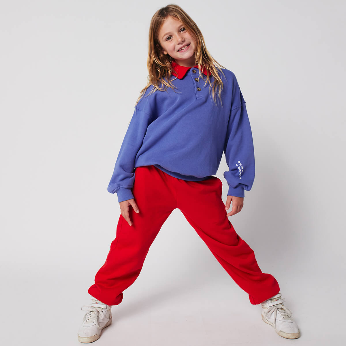 Curve Bobo Choses Sweatpants by Bobo Choses. Understated and cosy, these red joggers are a comfortable choice for those cooler days. Made from 100% organic cotton, featuring seam pockets and an elasticated waistband with adjustable drawstring.