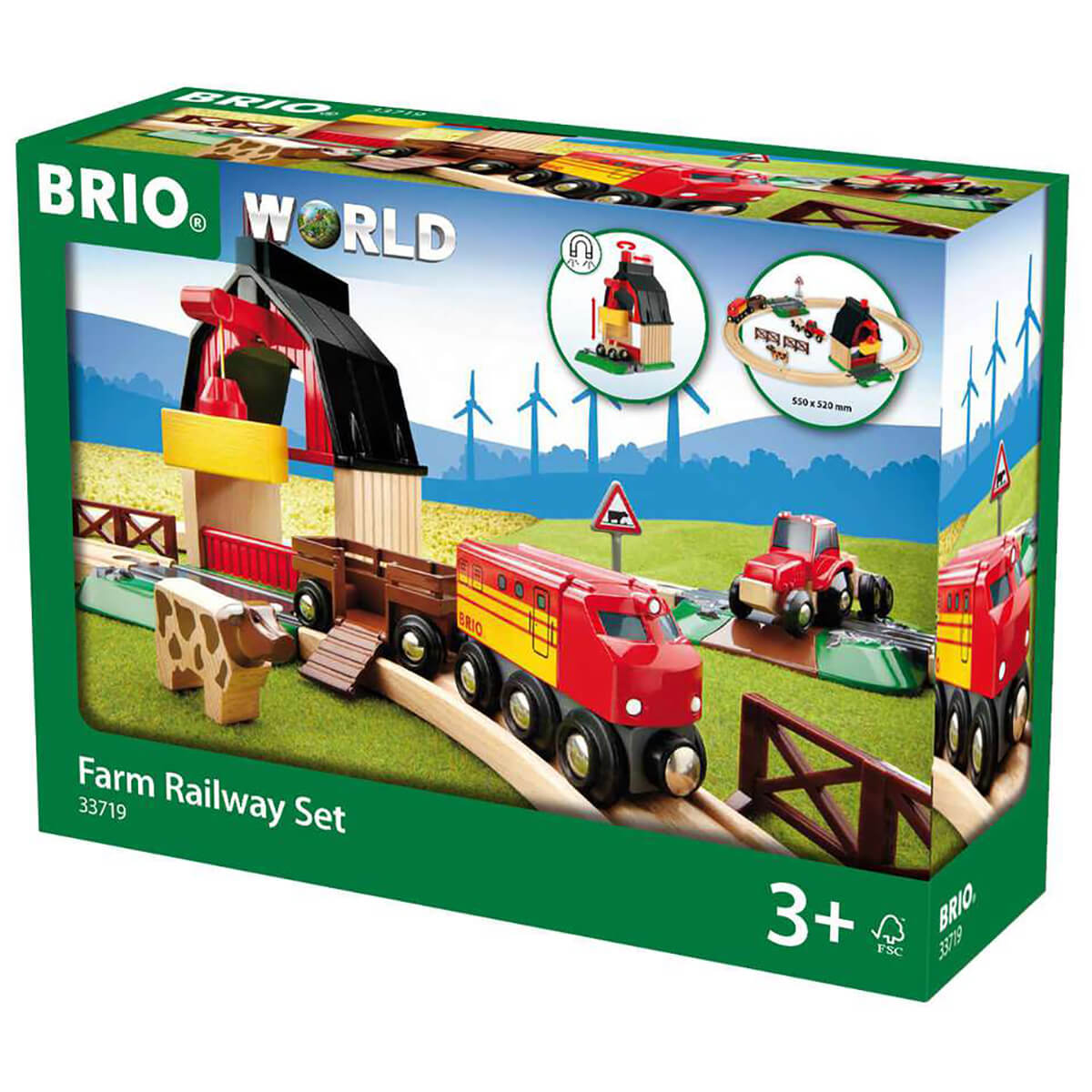 Part of the Brio World: The Farm Railway Set is fully compatible with other Brio sets, tracks and trains. Brio products are made from very high-quality plastic and European beech wood from sustainable sources. The Trains, Wagons, Carriages, and Road Vehicles all feature the classic Brio magnetic couplings allowing for easy connection to each other.