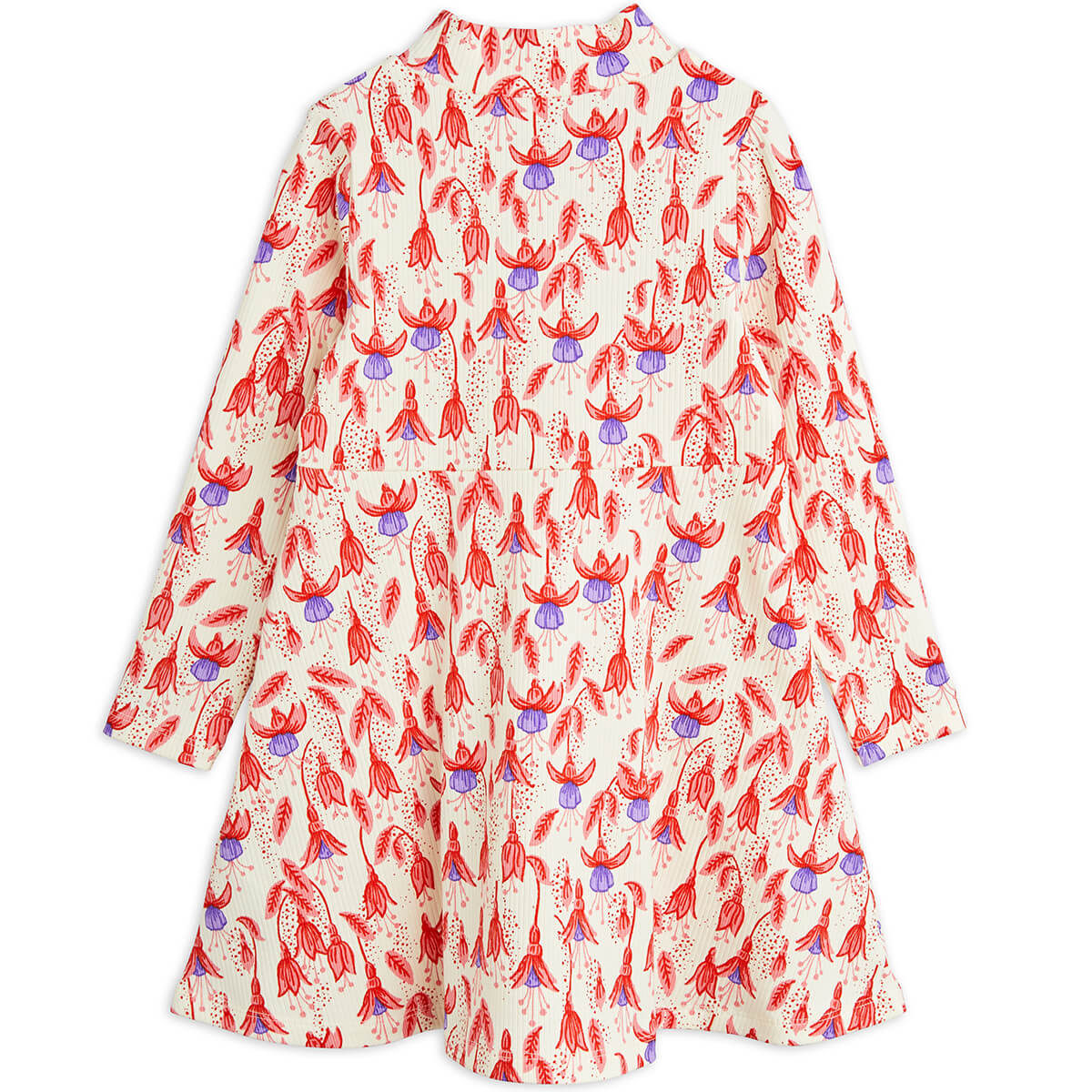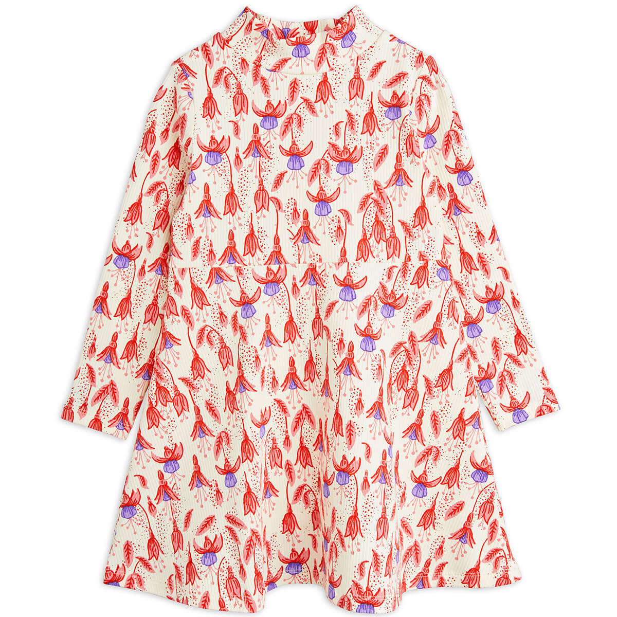 Fuchsia All Over Print Long Sleeve Dress by Mini Rodini. A long sleeved dress with a high neck and all over floral print.