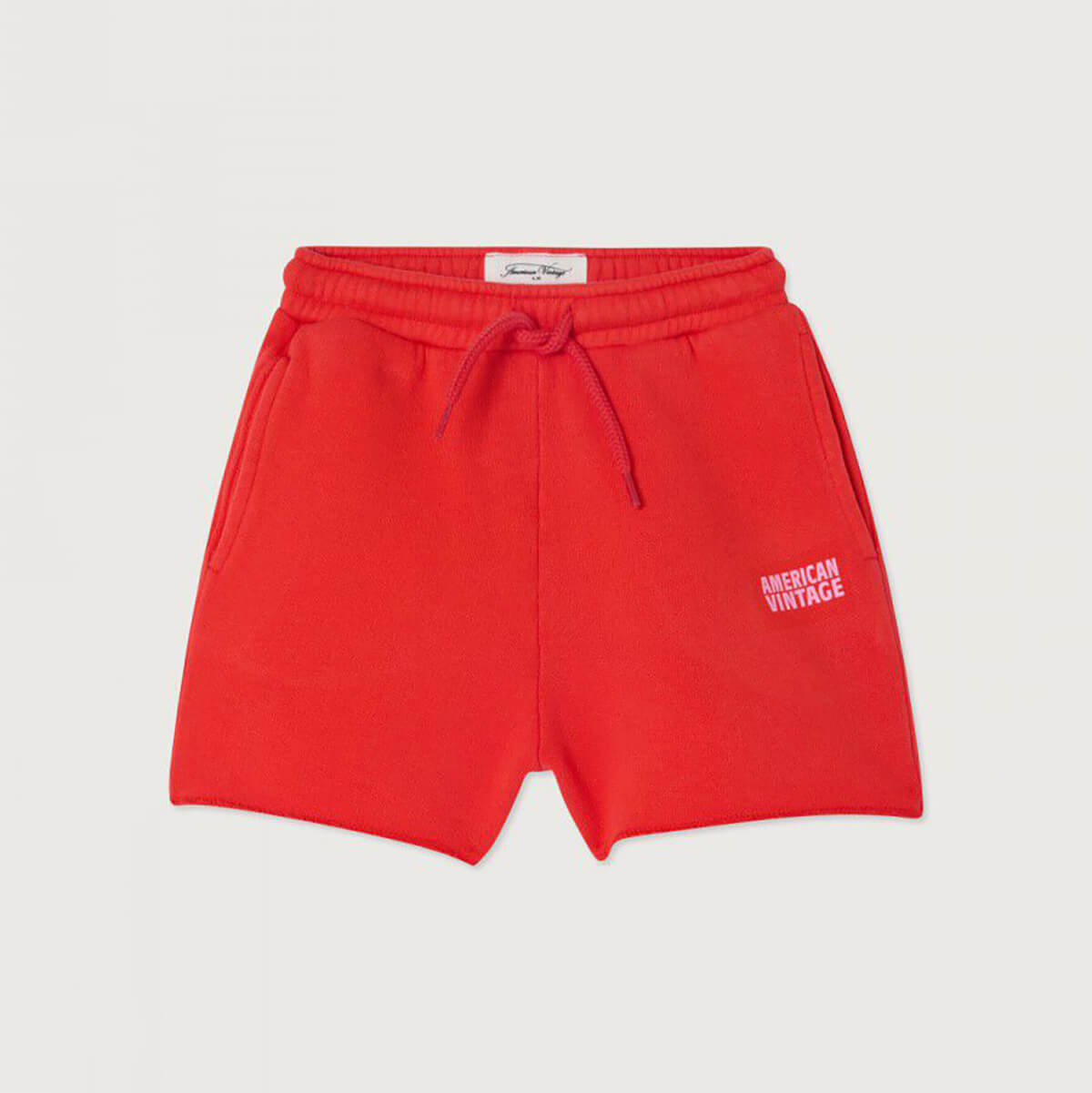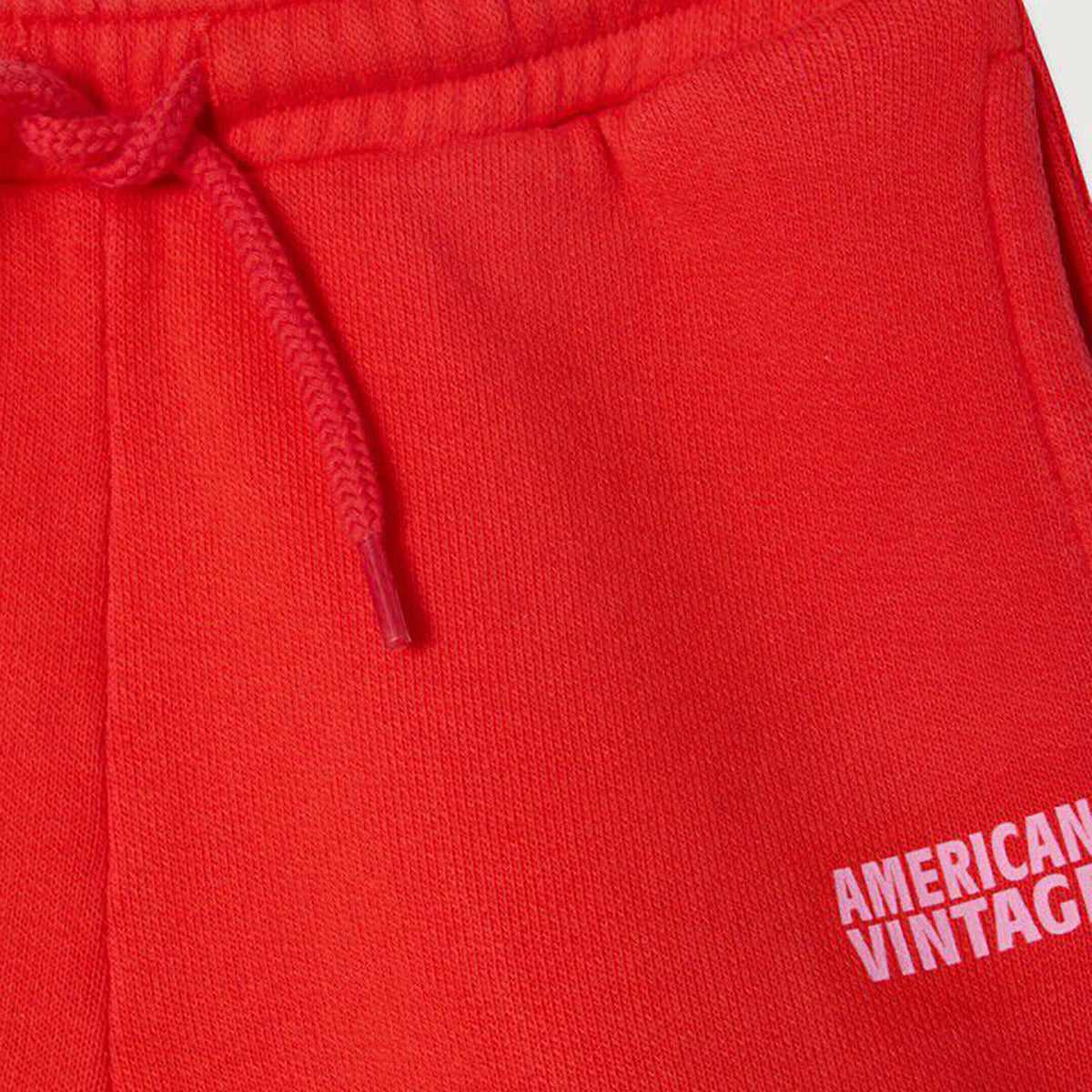Izubird kid's shorts by American Vintage. Simple sweatshorts with an elasticated waist, side pockets and overlocked raw hem. American Vintage logo in green printed on the front of the leg.