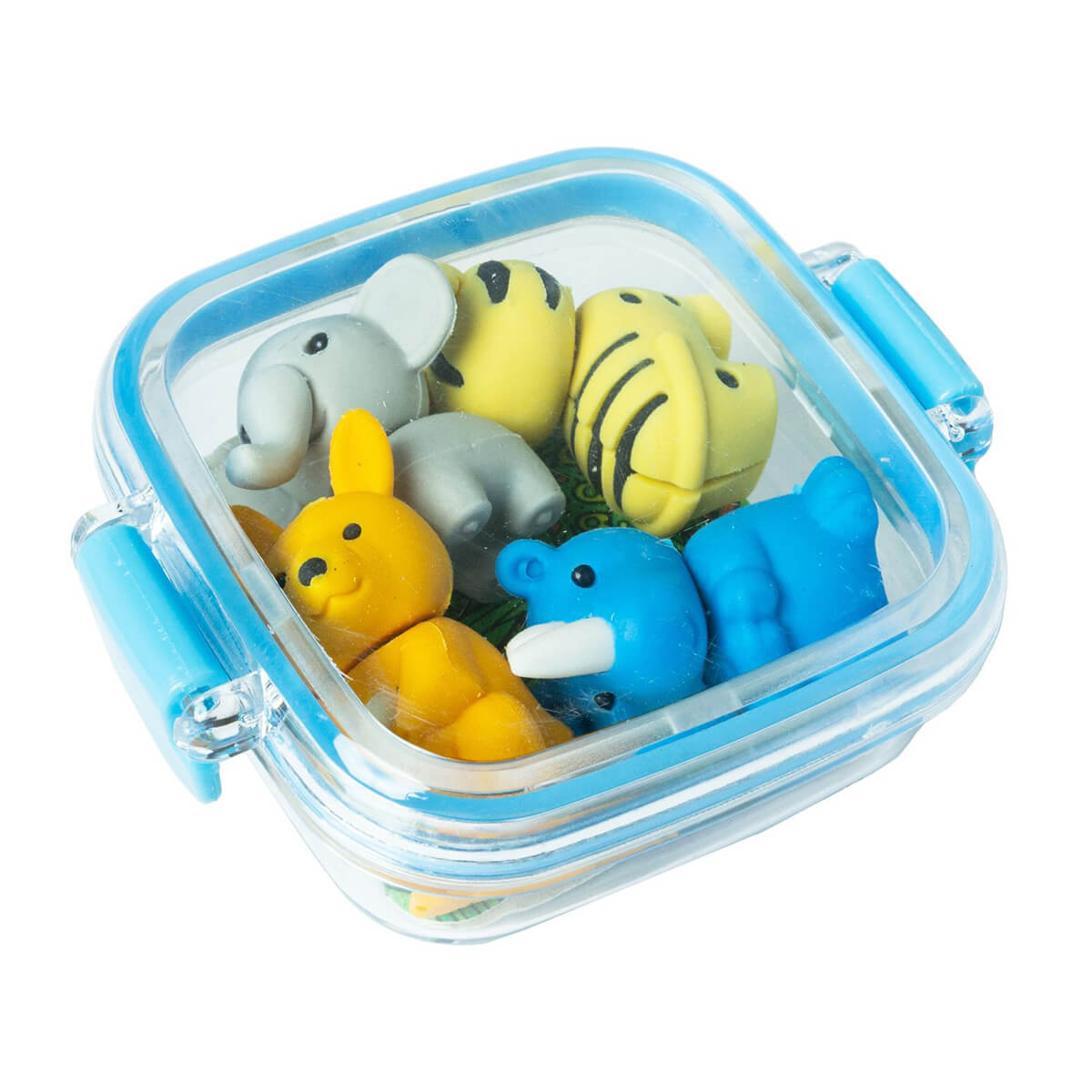 Jungle Animals erasers by House Of Marbles. A pocket-sized box of assorted novelty erasers in cute designs that will brighten up any pencil case. The jungle animals set features tigers, elephants, rhinos, and kangaroos. Plus, there’s a fun twist: mix and match the pieces to create a hybrid animal.