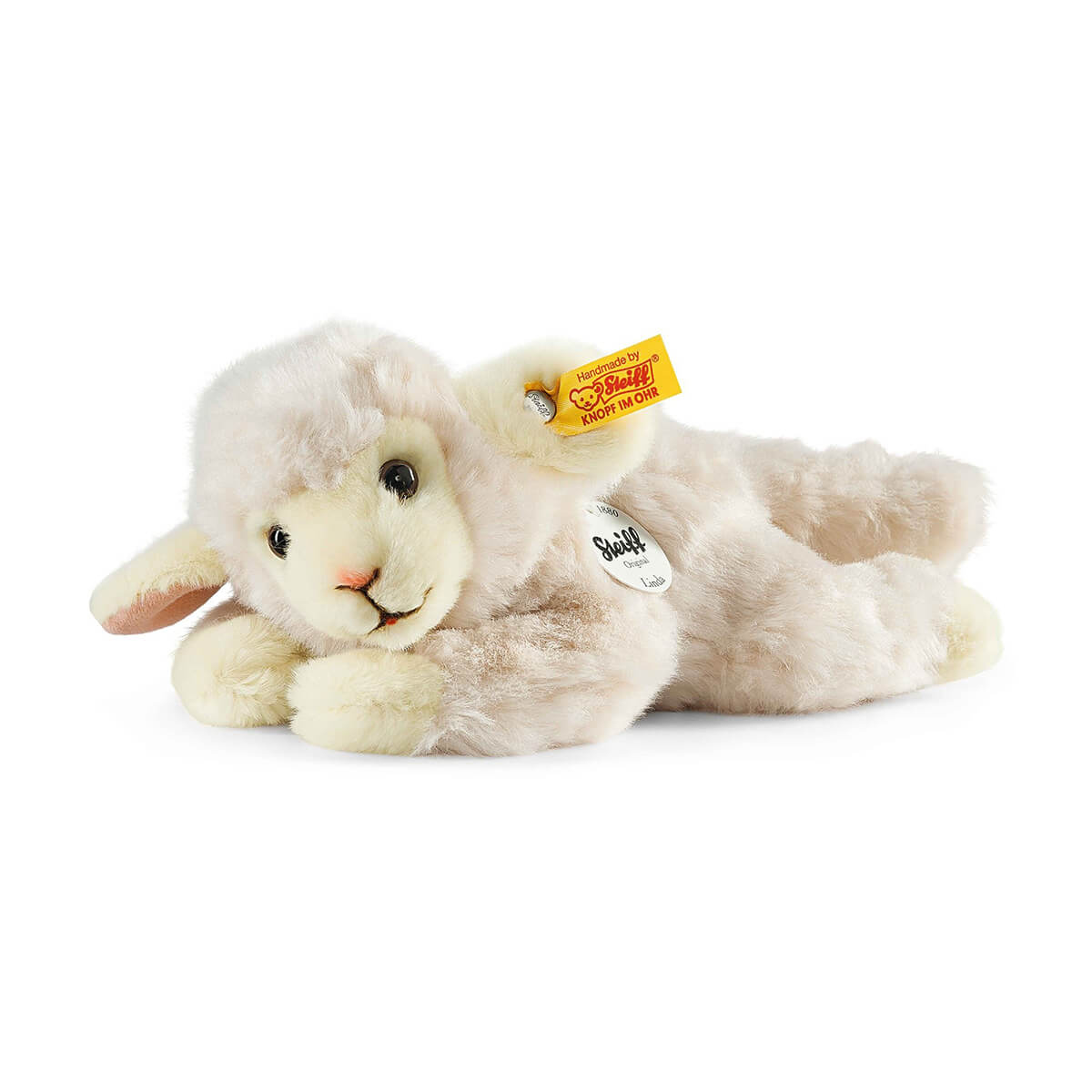 Linda Lamb by Steiff. Measuring 22cm Steiff’s little friend Linda lamb is made of cuddly soft woven fur and is looking forward to lots of cuddles. But when Linda is not cuddling, the lamb is frolicking around the child’s room, looking forward to lots of thrilling adventures. She has a Steiff tag and stainless steel "Button in Ear".