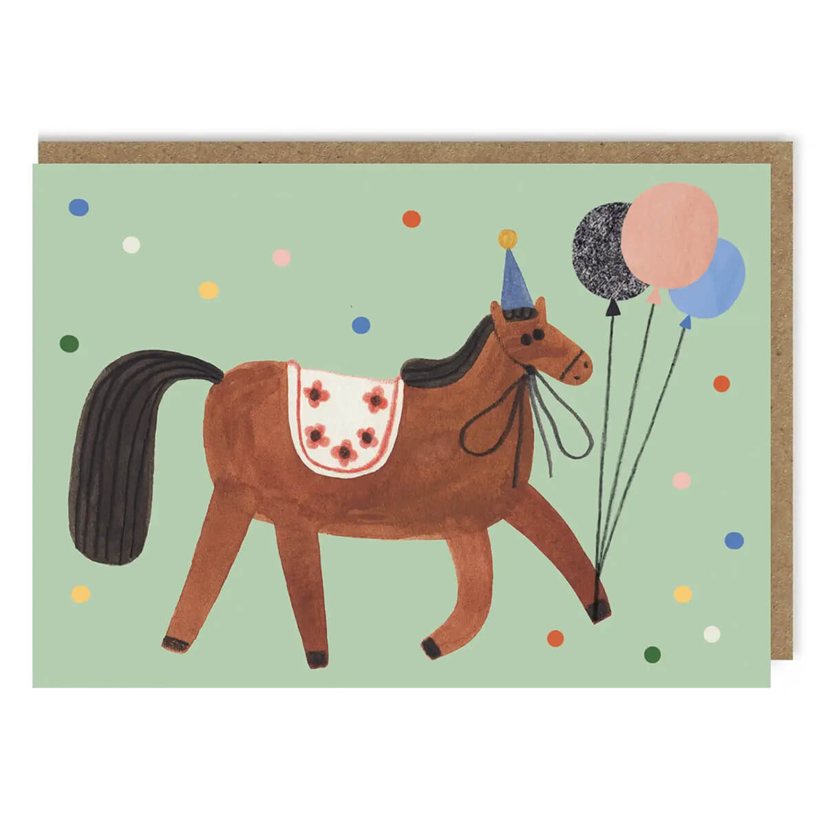 Party Horse Greetings Card by Daria Solak Illustrations. Crafted in a standard A6 size, this card features hand-drawn illustrations, brimming with charm and character.
