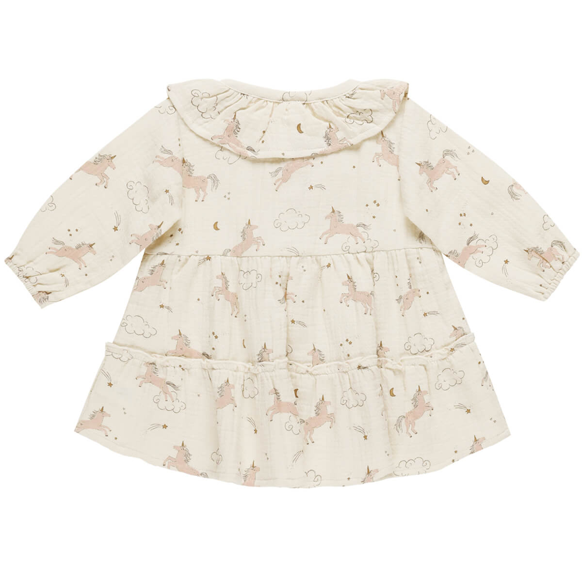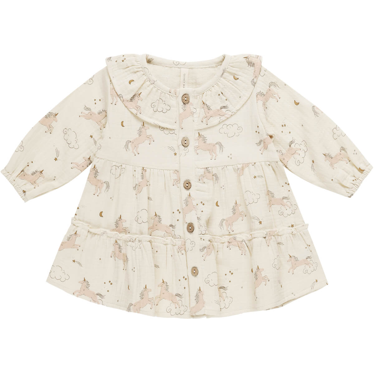 Ruffle Collar Button Dress in Unicorns by Quincy Mae