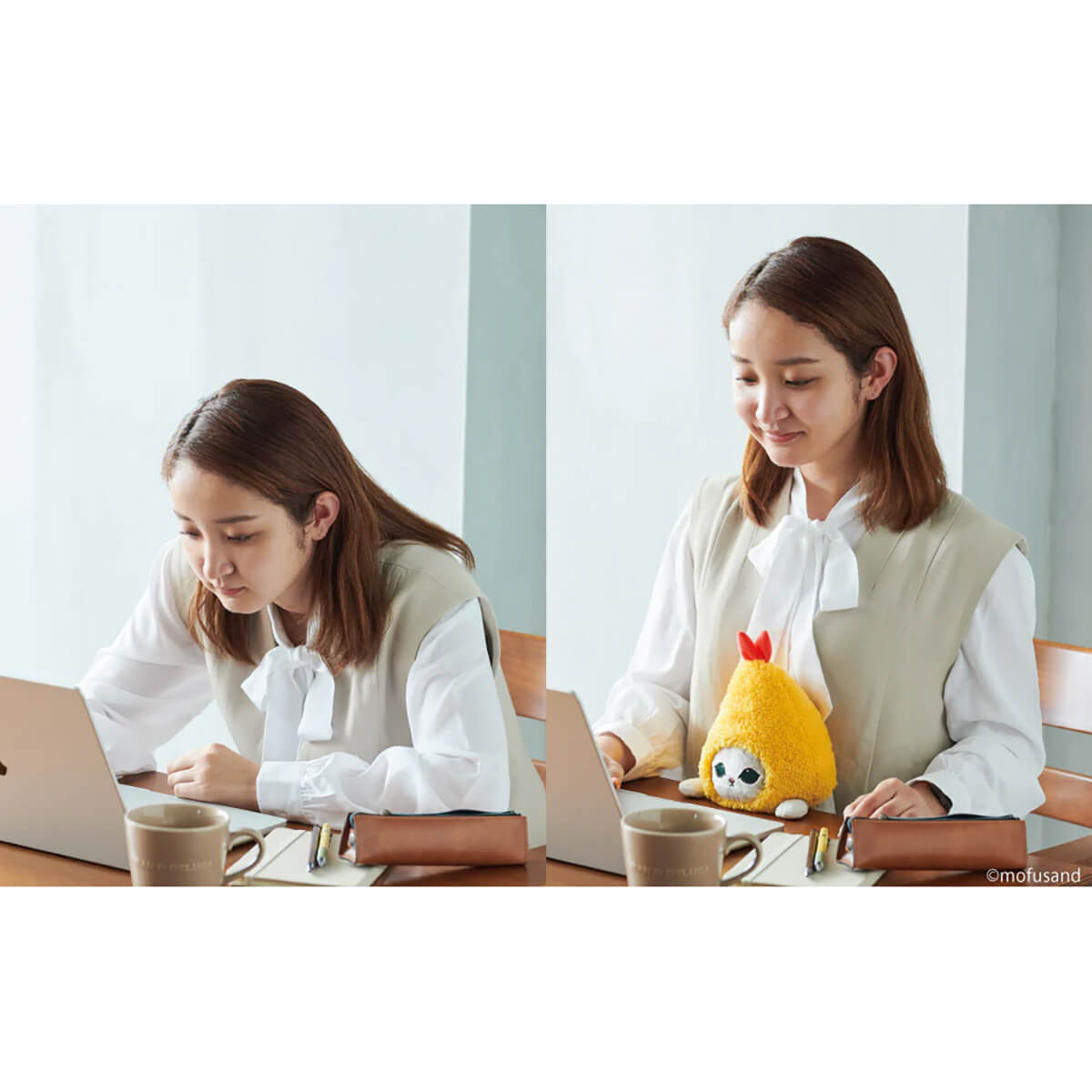 Shrimp Meow Posture Pal Mofusand (L) by Sonny Angel (Dreams). An adorable stuffed toy that encourages proper posture while sitting at your desk. Posture Pals (Funbaruzu in Japanese) are not only super cute but will also help you maintain good posture while seated. This cute little animal can be placed between your desk and your tummy to stop you slouching. With such an adorable appearance, they will support you as you work and study. Place your Posture Pal firmly between the tummy and the desk, which naturally elongates the back muscles, resulting in good posture. Inside the plush toy is a heart-shaped cushion that provides firm support for the posture that can be easily slumped forward during long hours at the desk, reducing fatigue while working or studying. Their soft fur makes you want to stroke them, and their dull eyes and adorable expressions will heal you. Official Sonny Angel / Dreams product in collaboration with Mofusand Japan.