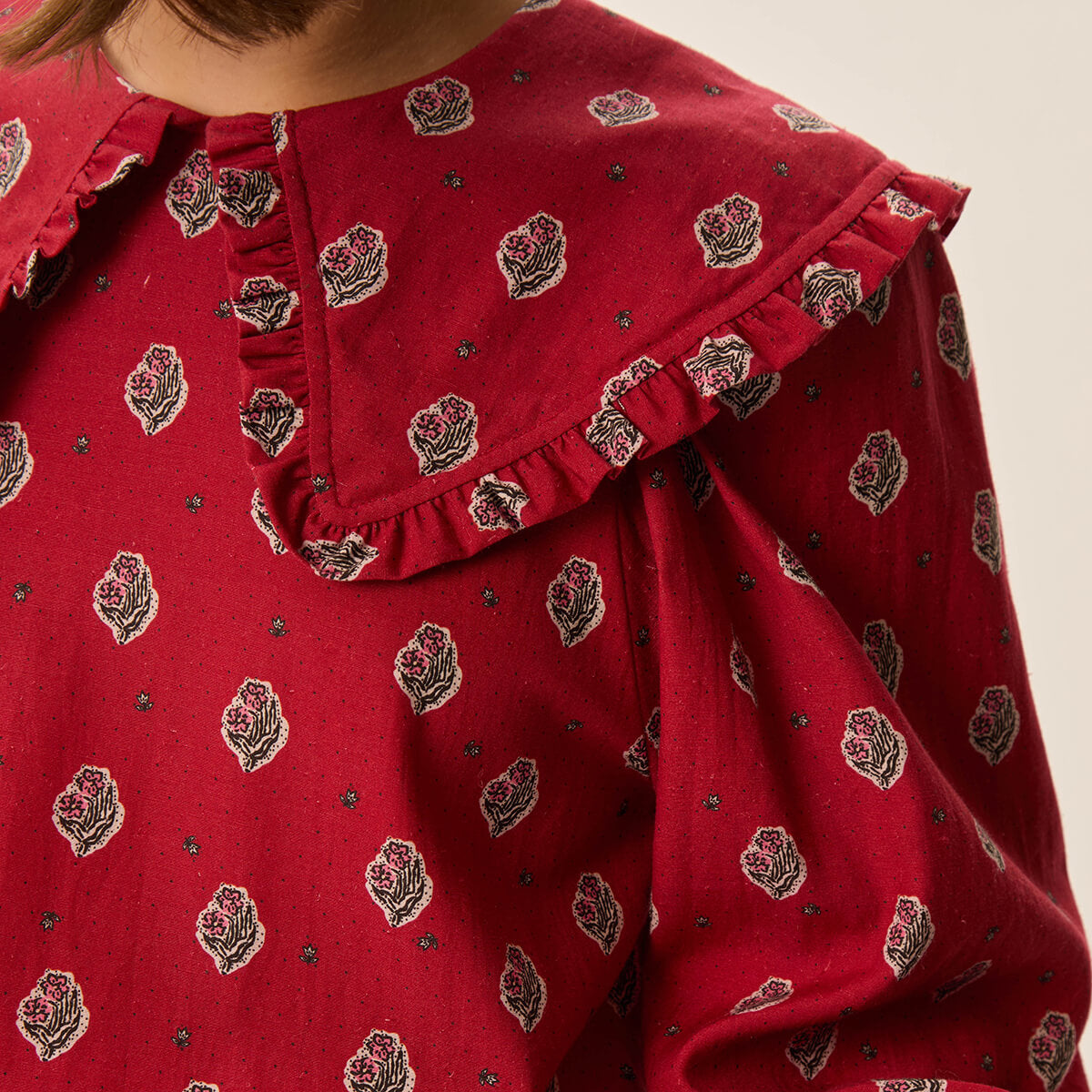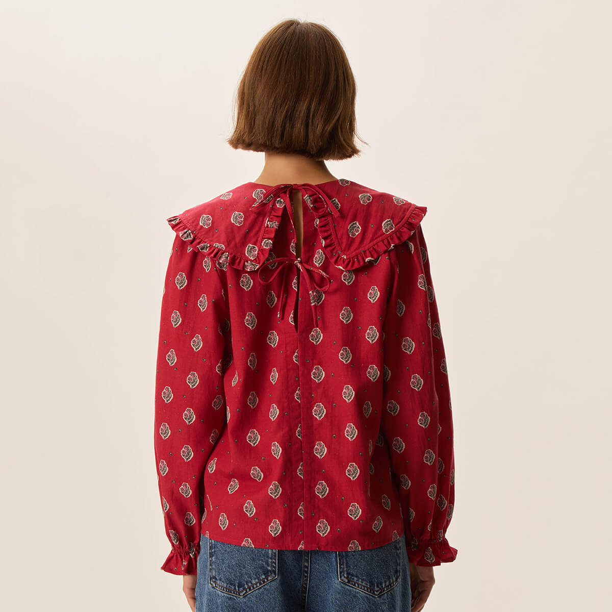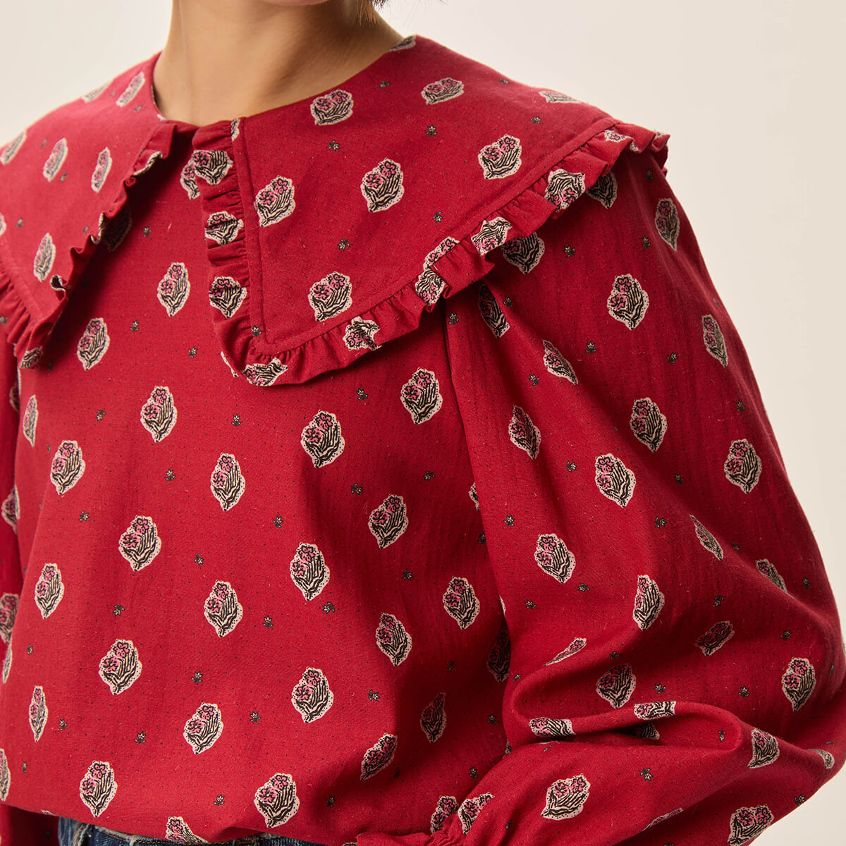 Blouse by Des Petits Hauts. Inspired by the Western style with its traditional pattern and XXL collar, the Tiana blouse seduces with its refined aesthetic. Folk and feminine, this fluid and lightweight piece will naturally stand out in your seasonal wardrobe.