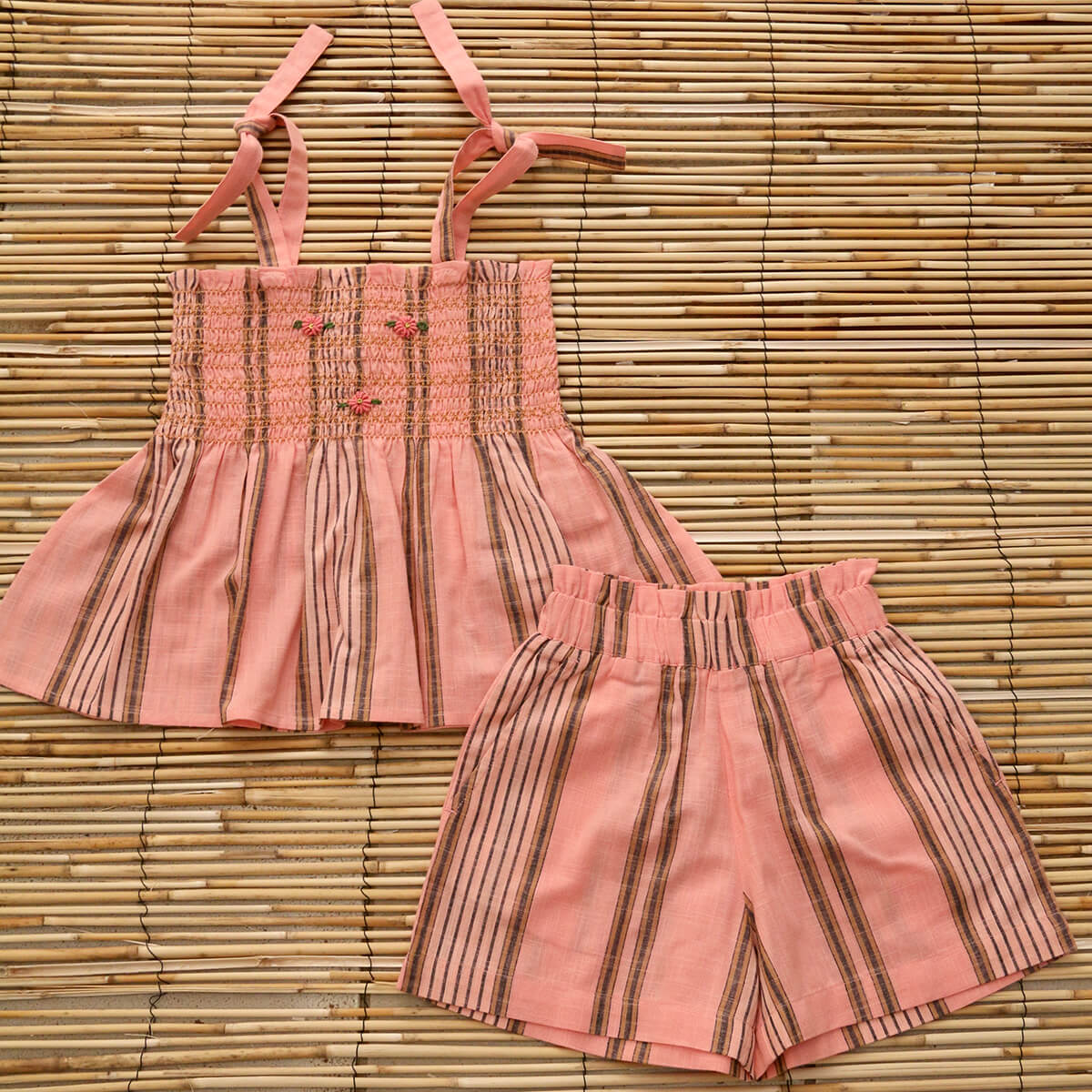Top And Shorts Set in Pink Transat Stripe by Bonjour - Last One In Stock - 10 Years