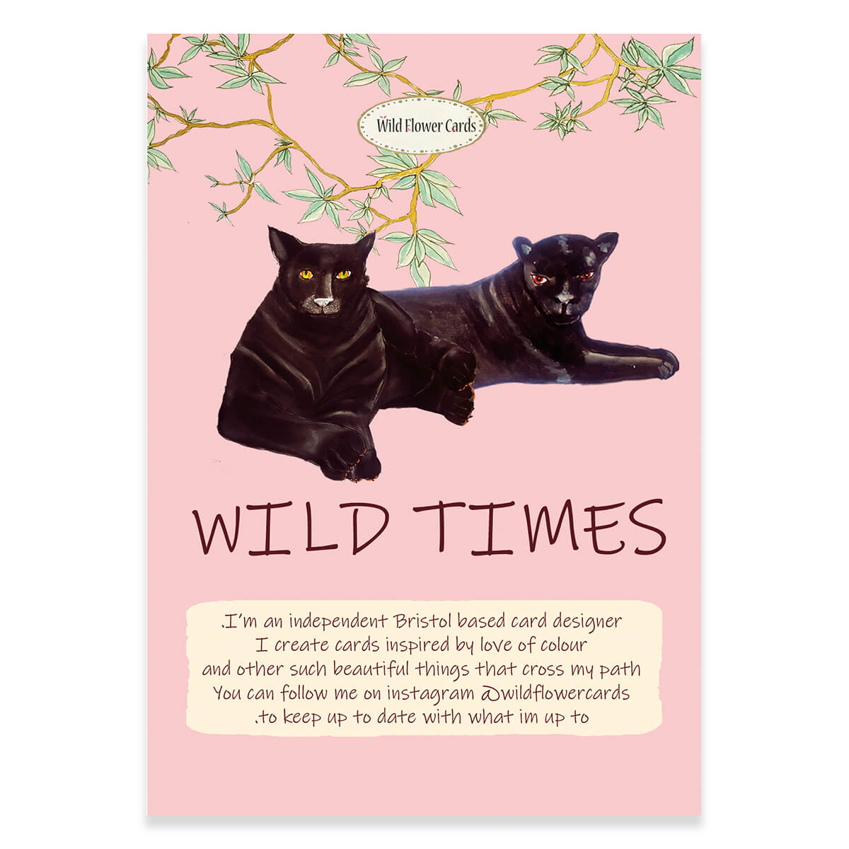 Wild Times greetings card by Wildflower Cards. Features an illustration by Grainne Thompson on both the front and back of the card. Blank inside with cream envelope.