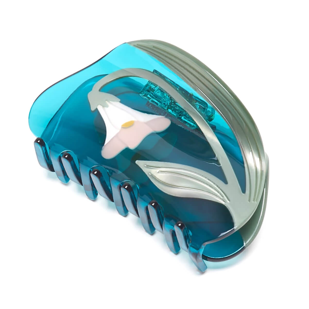 Alba Vine Flower Hair Claw by Winona Irene. This lovely teal claw made in clear material features a delicate white bloom.