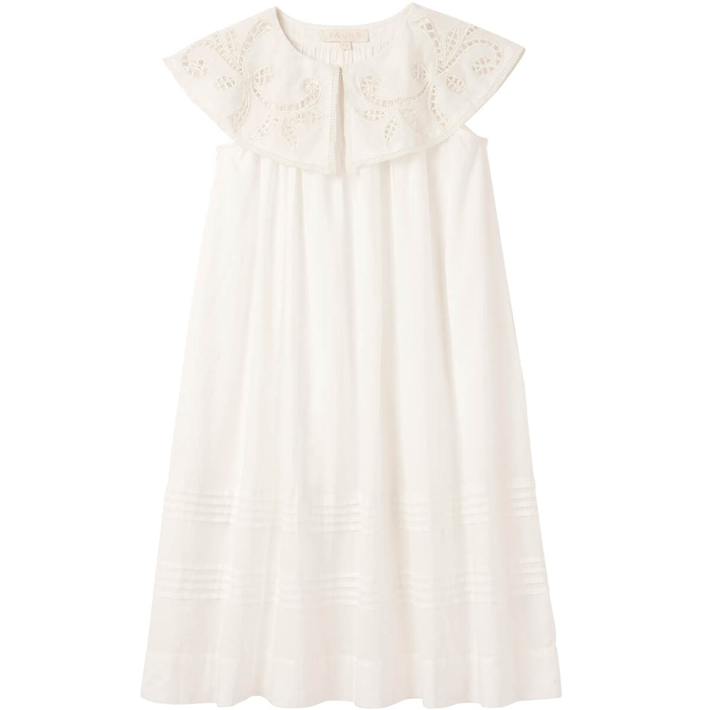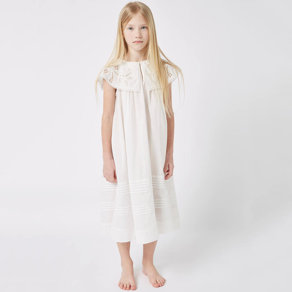 The Bay vintage inspired dress by Faune. An updated version of the Bay nightdress. The stunning embroidered cutwork collar adds a dramatic stylish edge to this beautiful nightie. The gathers create volume and an 'A' line silhouette and the pleats at the hem stay true to Faune's traditional and vintage aesthetic. This nightdress really adds a little luxury to bedtimes and beyond.