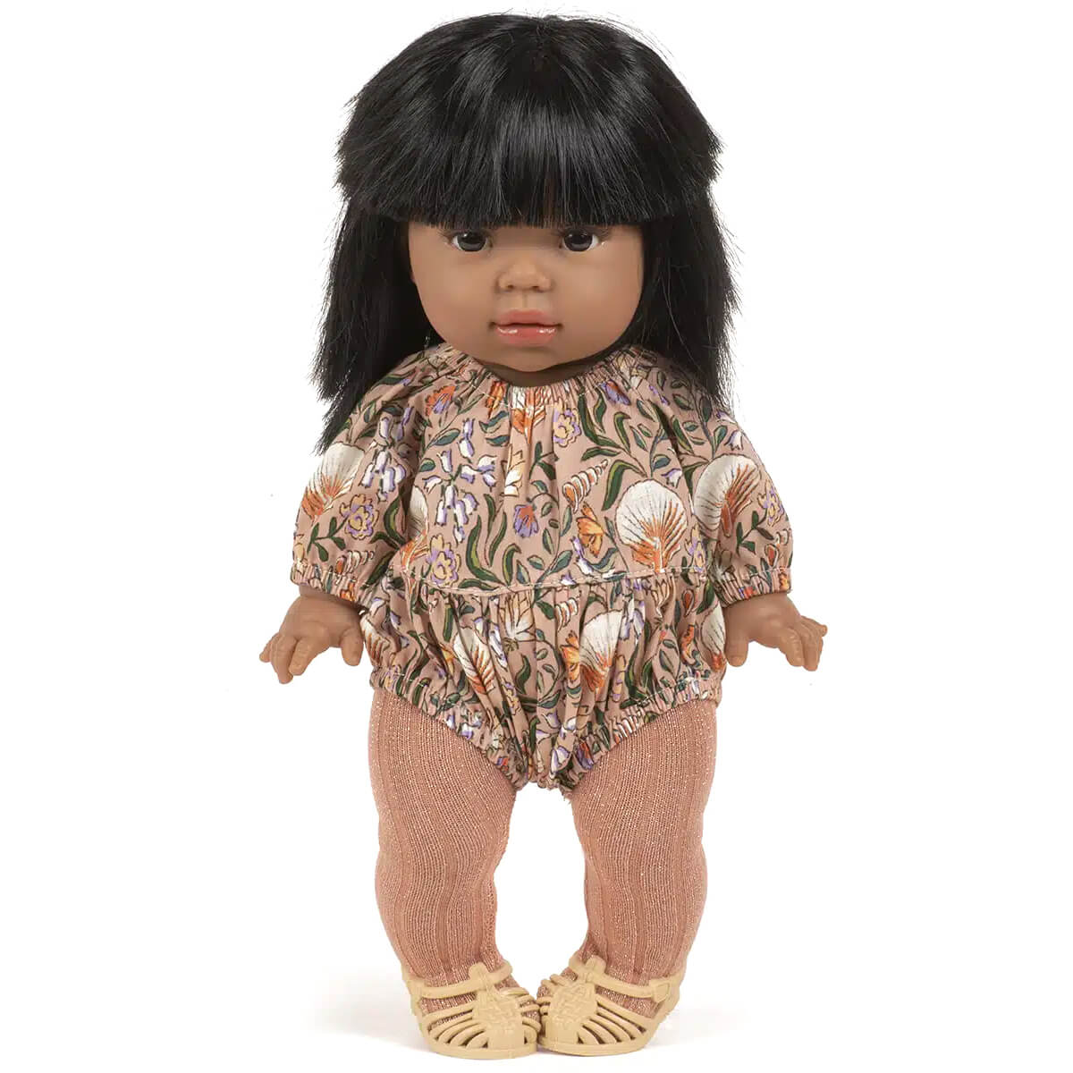 Bertille romper by Minikane. Beautiful handmade doll's romper in a special floral and shell print. Fits the Paola Reina 34cm and 37cm Gordi baby dolls.