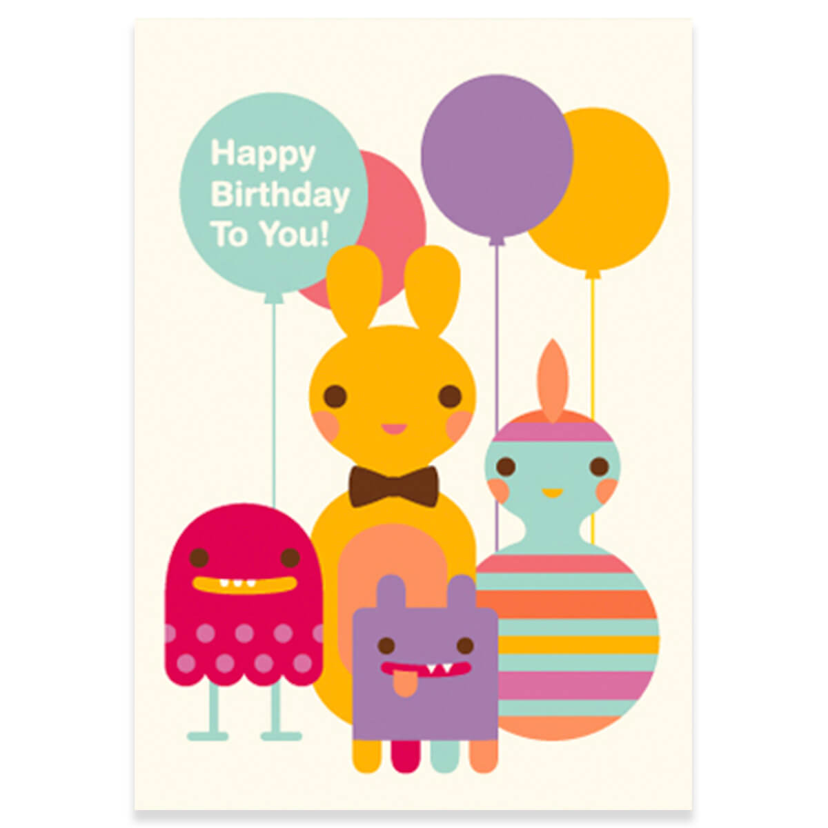 Birthday Gang greetings card by Dicky Bird. Features an illustration by Liz Wells. Blank inside with brown kraft envelope.