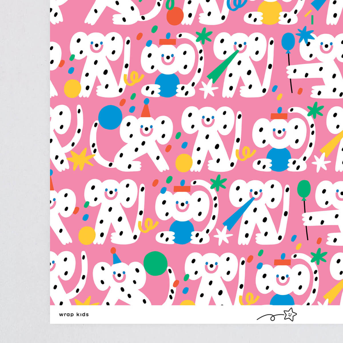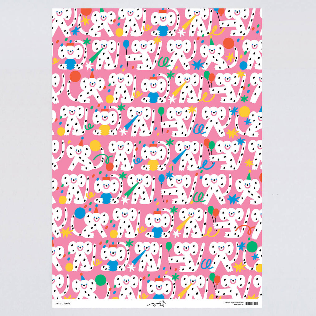 Birthday Monkeys gift wrap by Susie Hammer for Wrap. The perfect wrapping paper for the cheeky little monkeys in your life. With party hats, birthday balloons, and just a touch of confetti, Susie Hammer's designs are fun-filled and brightly hued. A wonderful way to wrap a special gift.