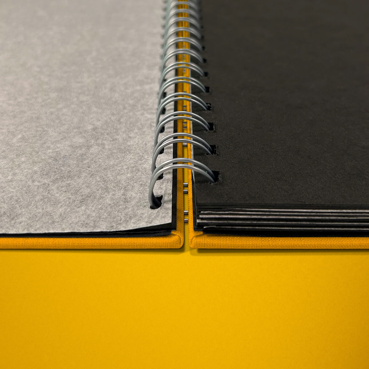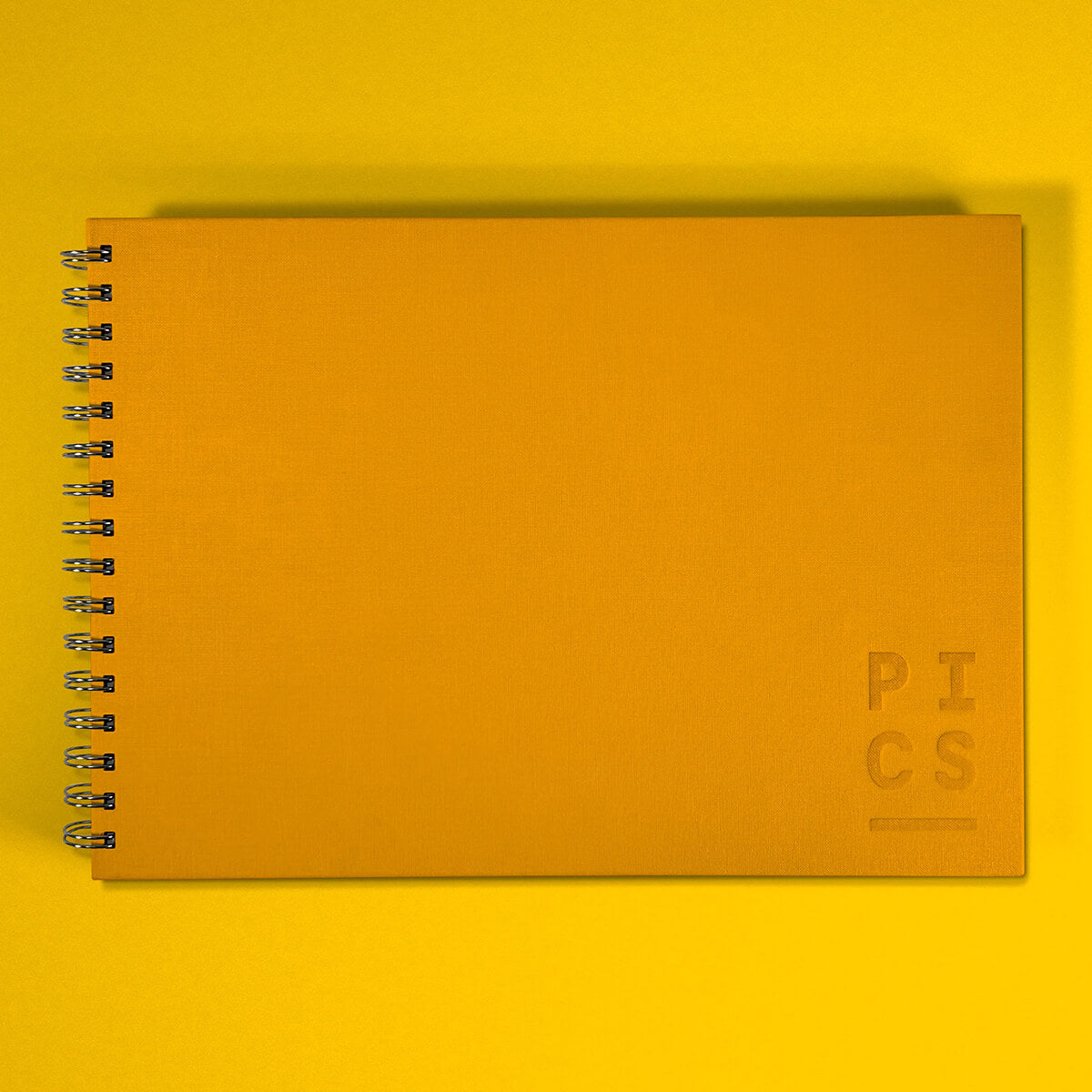 Wire binding with coloured linen and debossed detail.