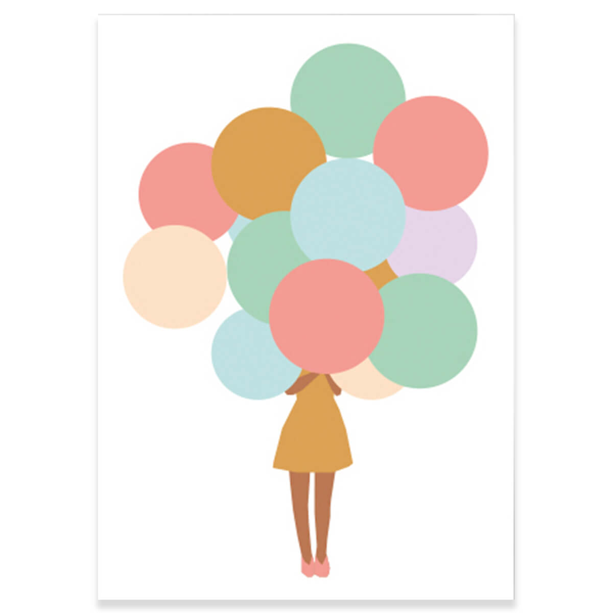 Bunch Of Balloons greetings card by Dicky Bird. Features an illustration by Liz Wells. Blank inside with white envelope.