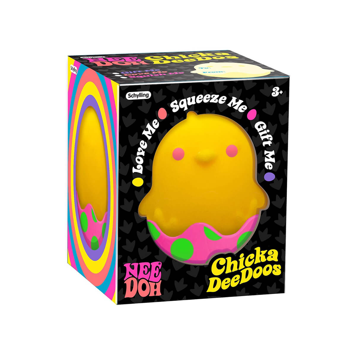 Chicka Deedoos Needoh squishy toy by Schylling. A sensory squish for your little chicks! Kids will ‘crack up’ when playing with these ‘egg-straordinary’ NeeDoh Chicka DeeDoos, featuring a squeezable chick inside a spotty, stripey or zigzag eggshell. The eggshells are removable for added play value.