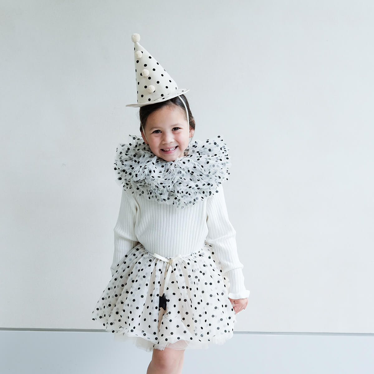 Clown set by Mimi & Lula. Treat your little performer to this super cool clown ruffle collar and hat set so they can treat you to the greatest show! They'll be happy as can be clowning around all day in this super fun set!