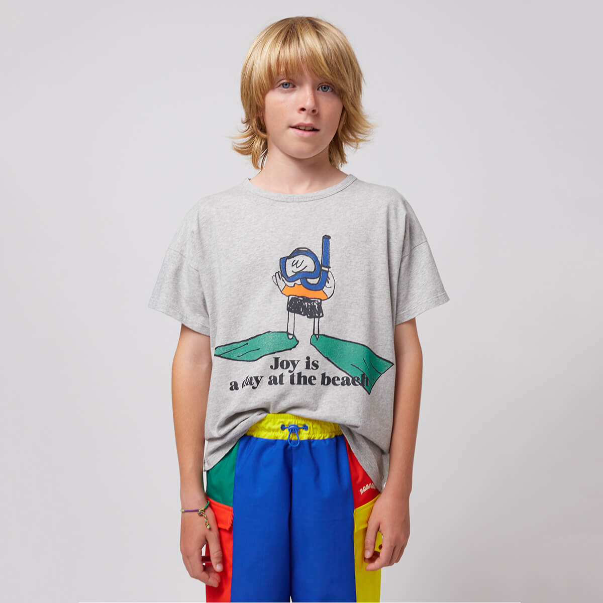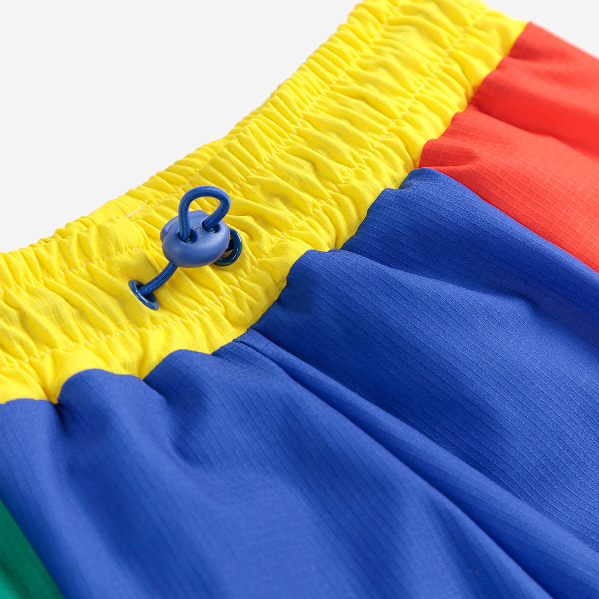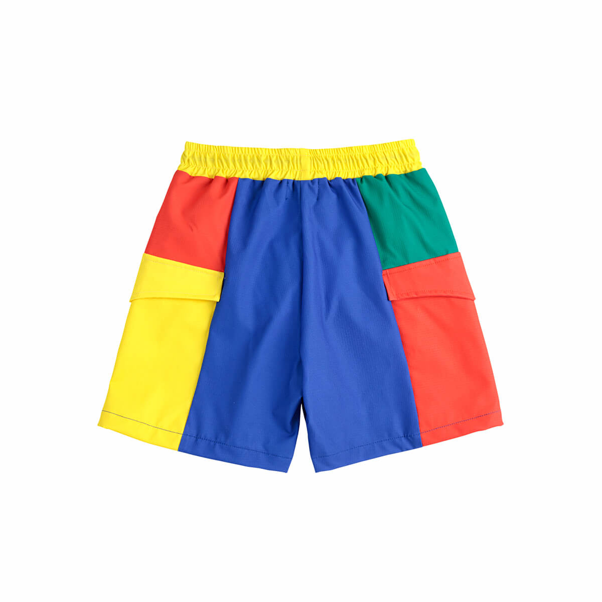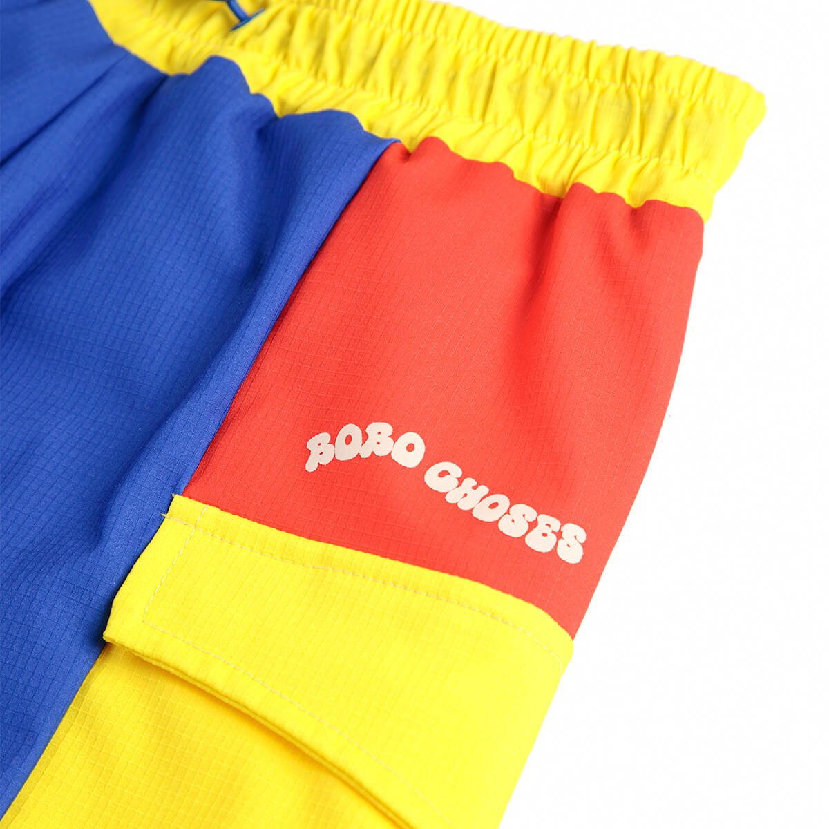 Colour Block Swim Boardshorts by Bobo Choses. Playful and practical, this multicolor swimwear combines vibrant design with functionality. It features an elasticated waistband, adjustable drawstring, over-knee length, mesh lining, and a flap pocket for added convenience. Made responsibly in Spain.