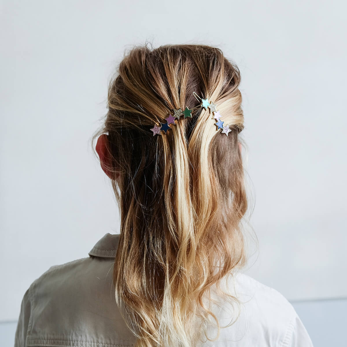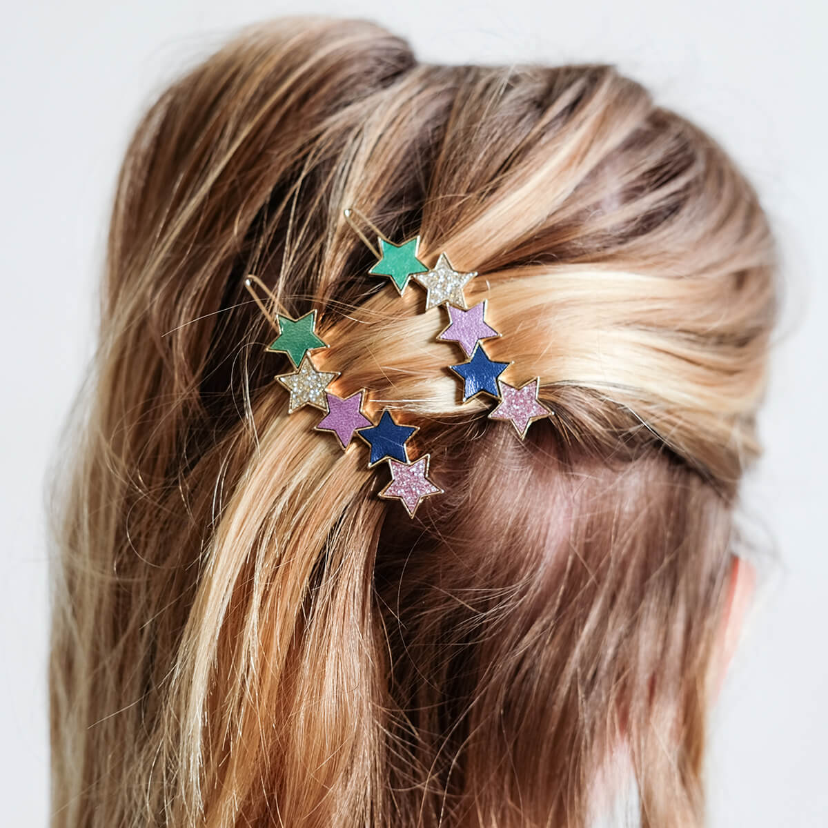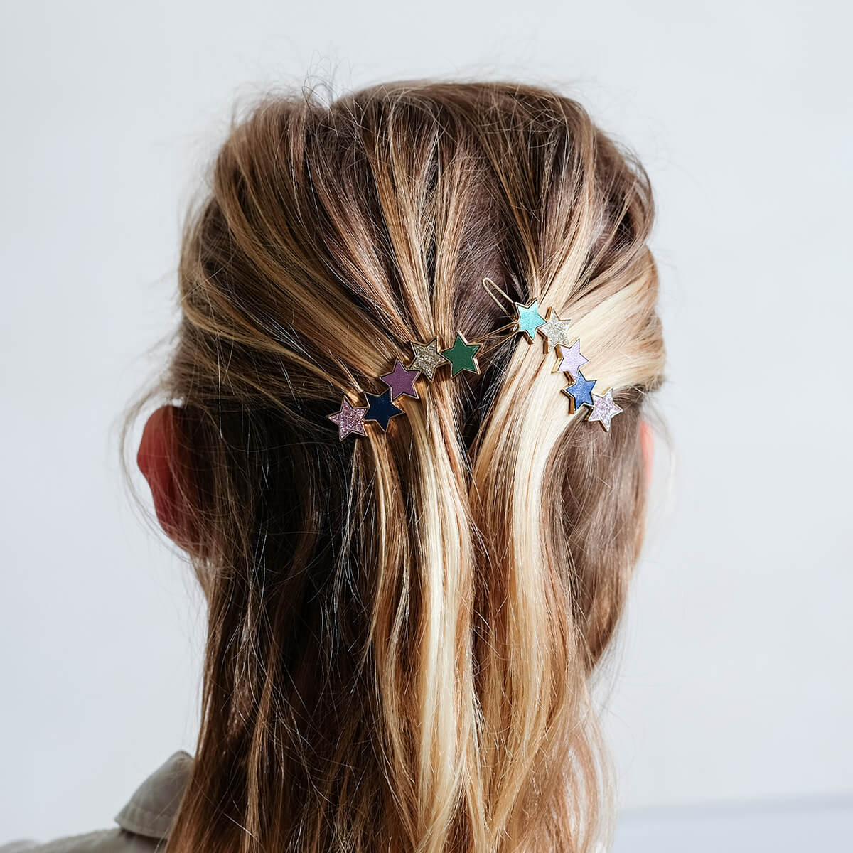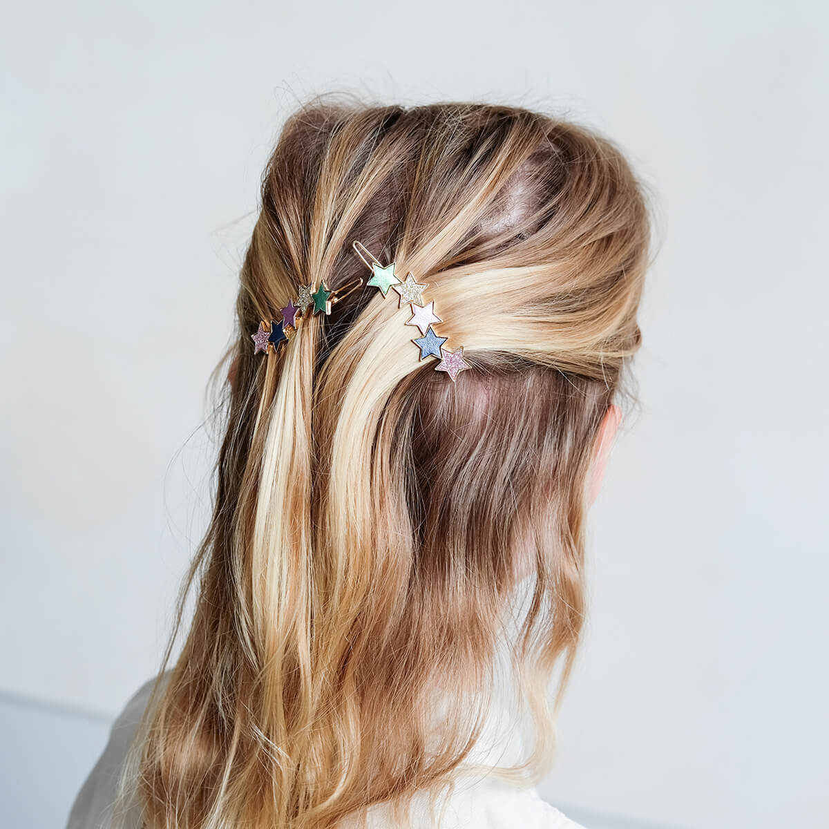 Cosmic Snap Hair Grips by Mimi & Lula. Reach for the stars! A super pretty duo of star clips, each with a collection of shimmering stars in the most beautiful combination of colours. These are great for holding back thicker hair.