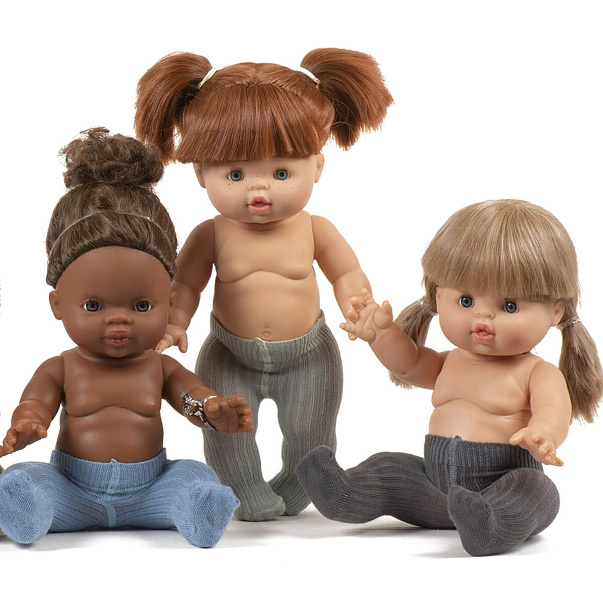 Two pack of tights by Minikane X Collegien. Knitted tights with an elasticated waist by Collegien for Minikane. Fits the Paola Reina 28cm Soft-bodied baby dolls and the 34cm Gordi baby dolls.
