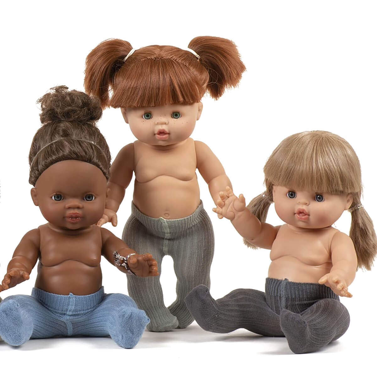 Two pack of tights by Minikane X Collegien. Knitted tights with an elasticated waist by Collegien for Minikane. Fits the Paola Reina 28cm Soft-bodied baby dolls and the 34cm Gordi baby dolls.