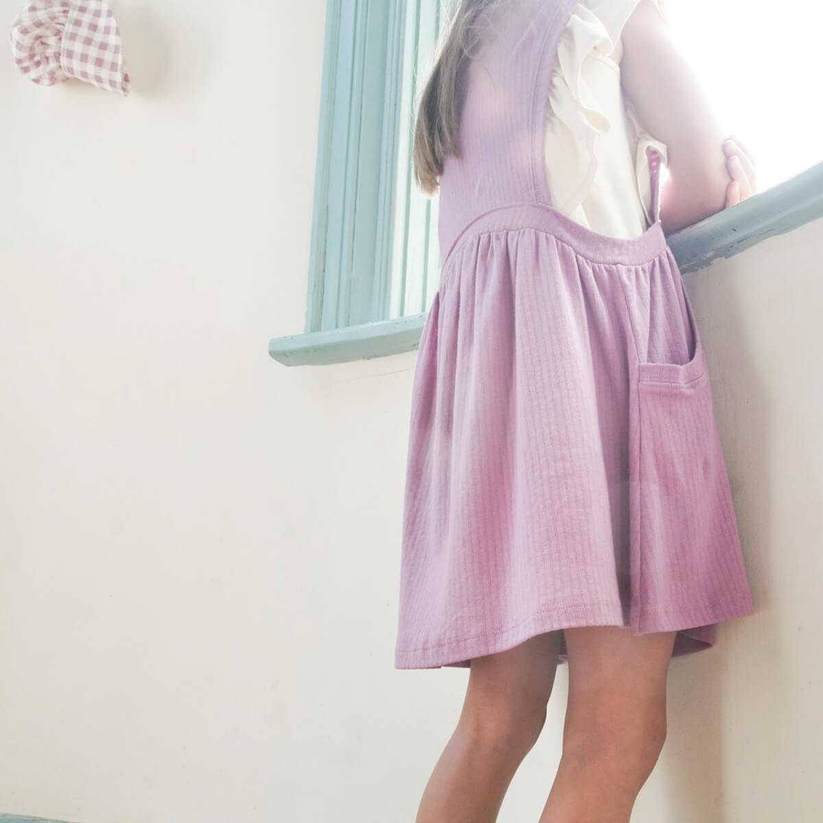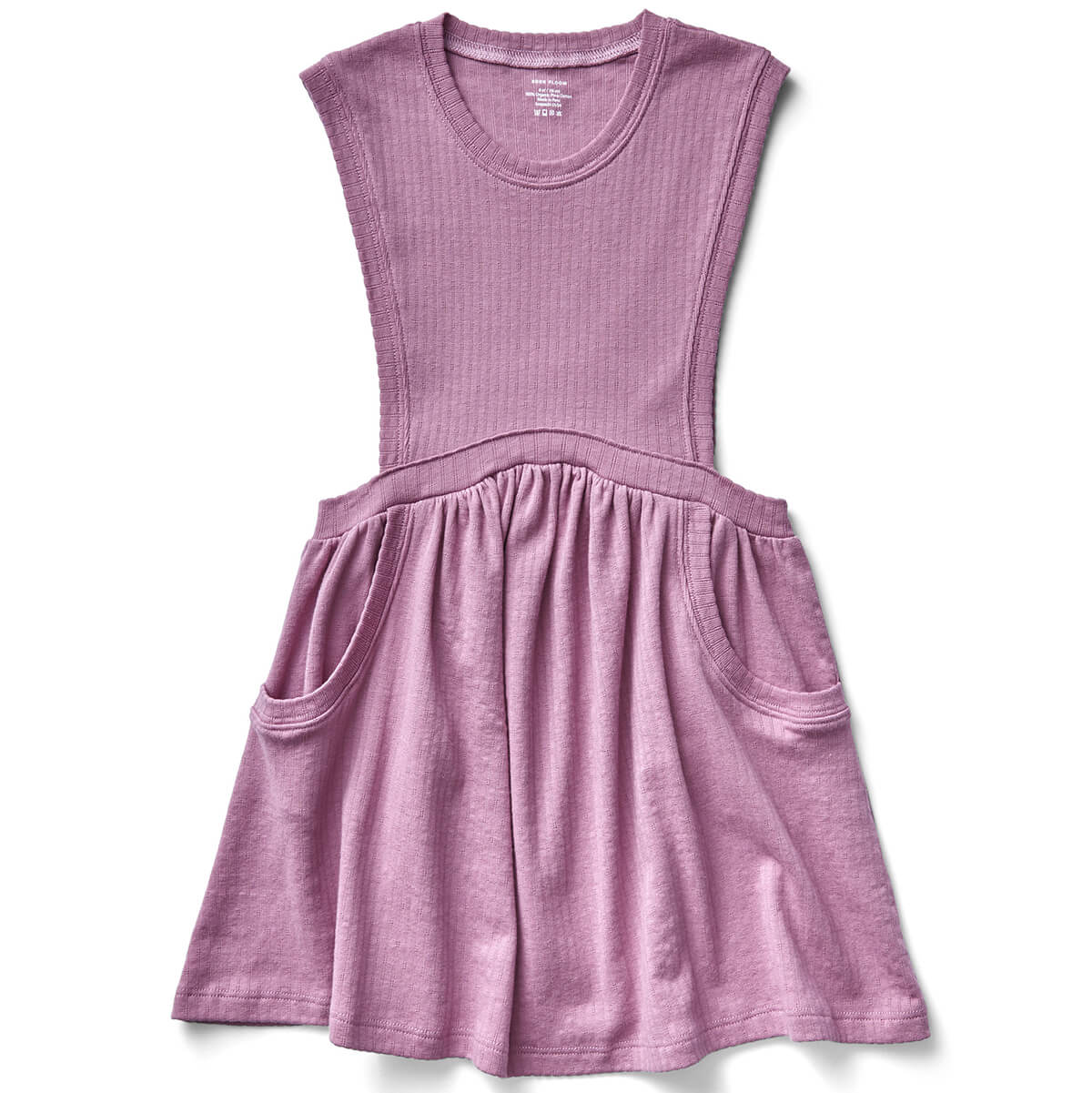 Dunes Dress by Soor Ploom. Pinafore dress in softest organic pima cotton rib and pointelle. Bibbed bodice with open sides and oversized pockets.