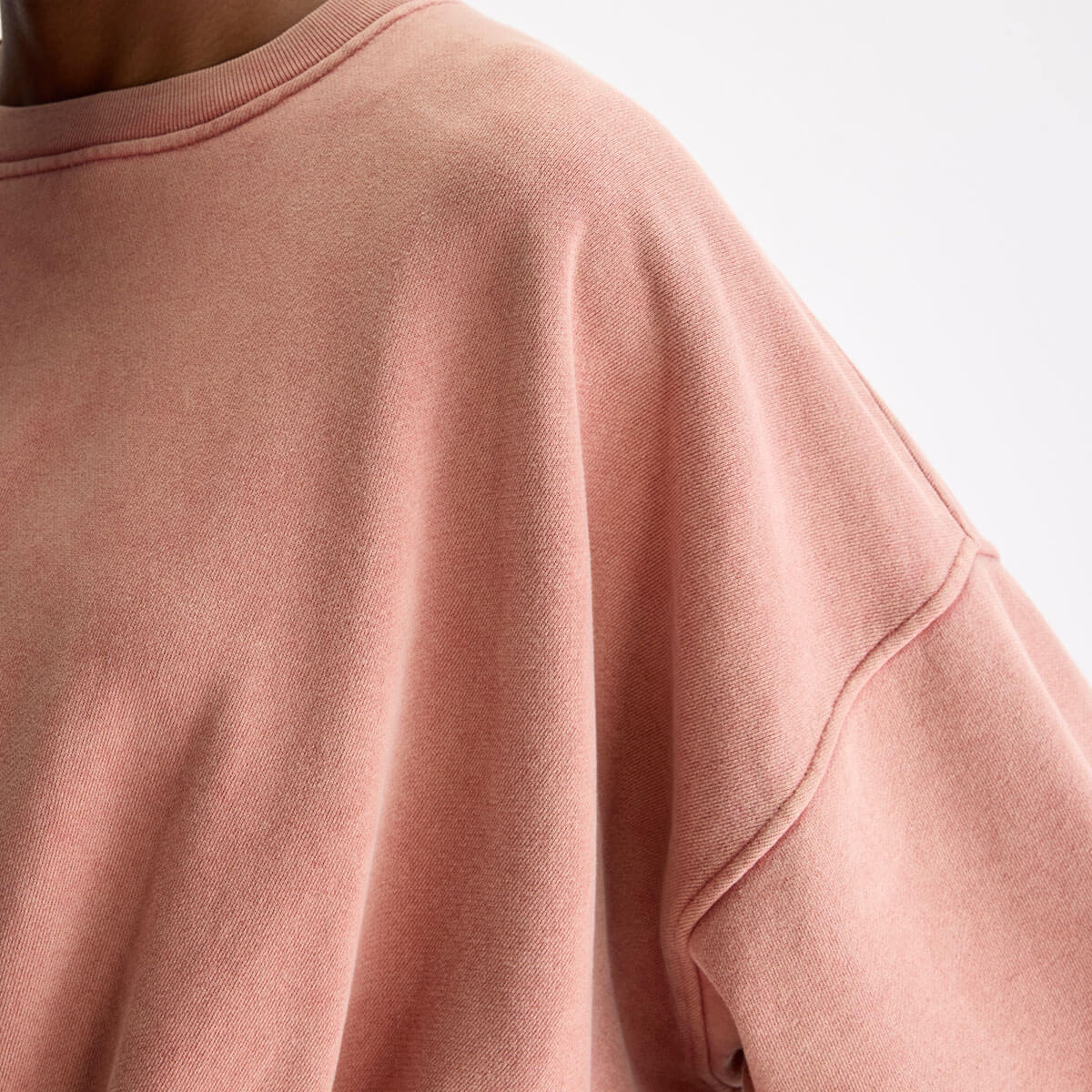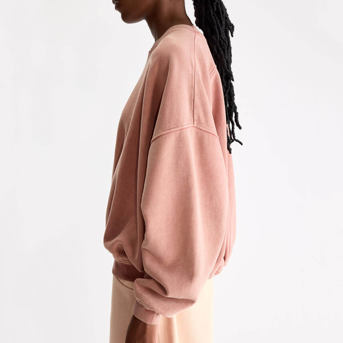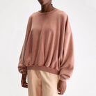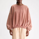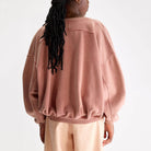 Finko Sweatshirt by Bellerose. Oversized faded red crewneck sweatshirt with exposed seam detailing.