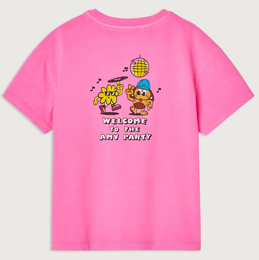 Fizvalley kid's T shirt by American Vintage. Vintage inspired straight cut short sleeve tee in fluorescent pink with American Vintage placement print on the chest.