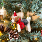 Fox Terrier with mistletoe hanging Christmas decoration. A beautiful, handmade and fair trade felt decoration.