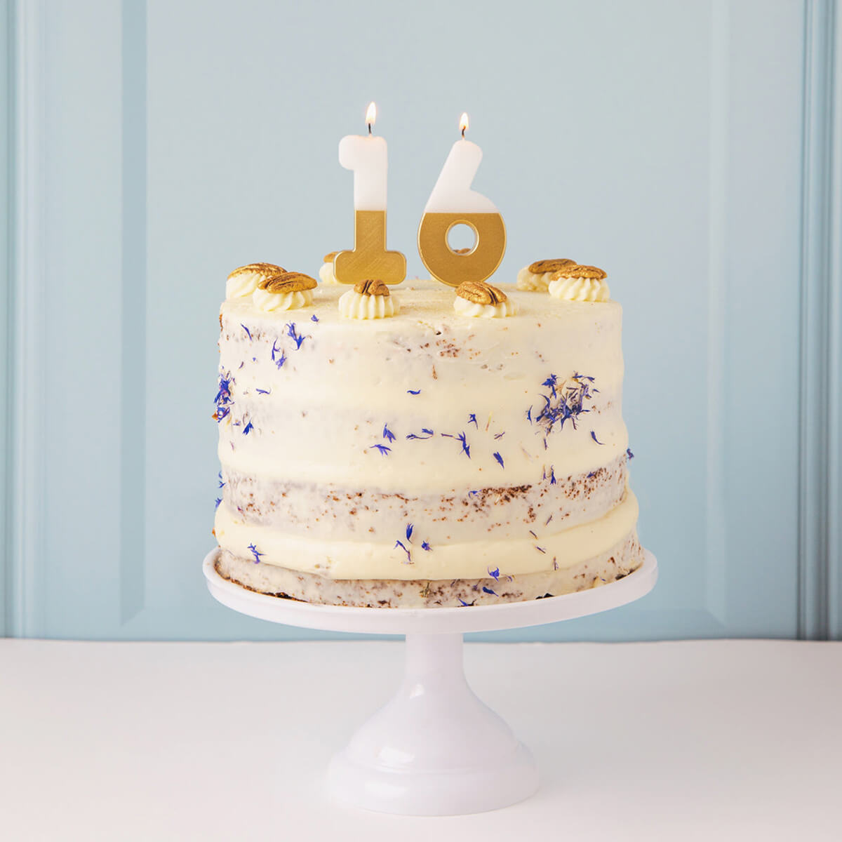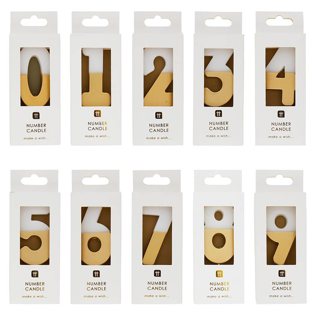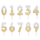 White and gold birthday number candles by Talking Tables. Celebrate your special big day with these special number gold dipped candles. Perfect for popping on a special birthday cake or even a little cupcake! Mix and match with other birthday candles and decorations for a fabulous cake topper.