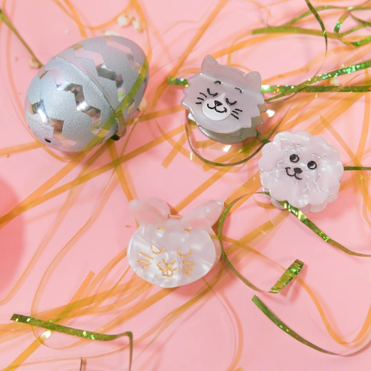 Grey cat mini hair claw by Coucou Suzette. A lovely full acetate mini hair claw with grey fur and black etched details. A creative and adorable accessory to hold all your hair strands properly. Made from plant-based eco-friendly cellulose acetate.
