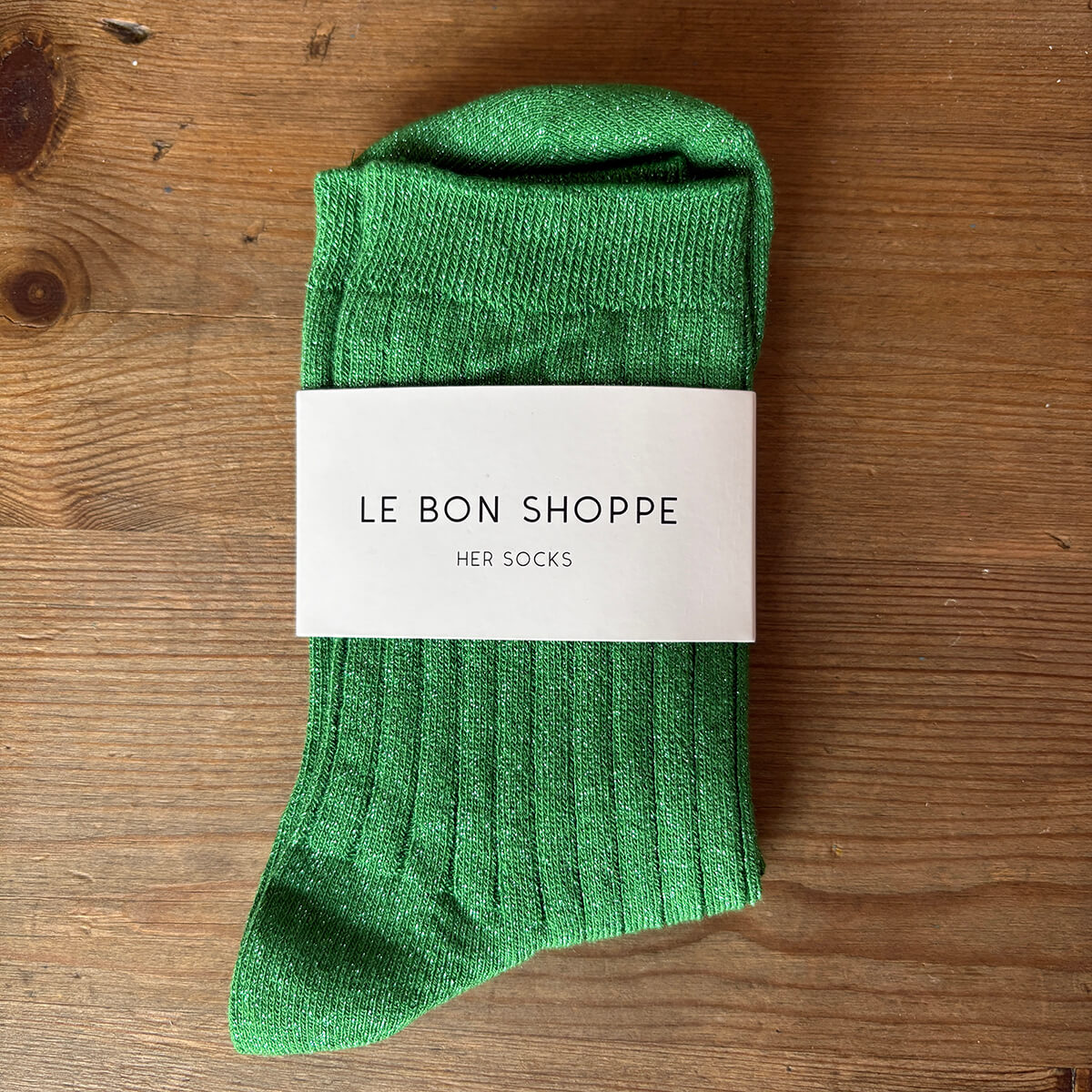 Her Adult Socks in Emerald Glitter by Le Bon Shoppe