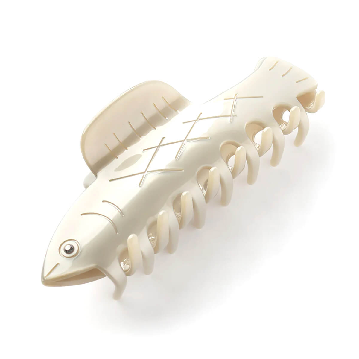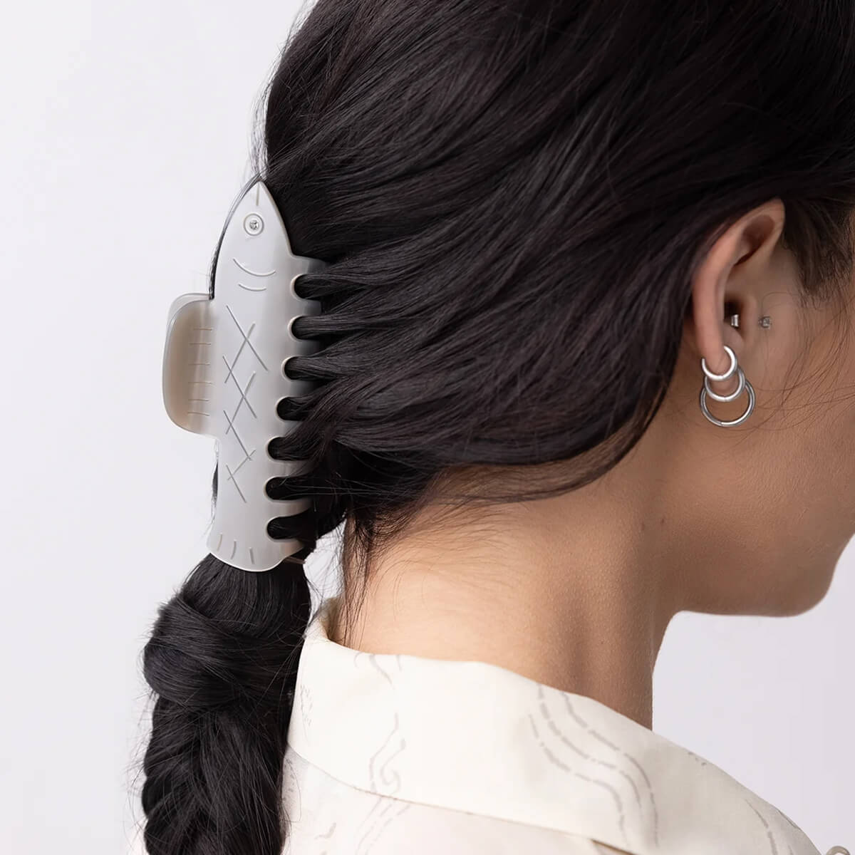 Herring Hair Claw by Winona Irene. Whether you're a fan of pickled herring or just enamored by the sea, this claw is sure to quickly become a favorite in your collection! Featuring a claw that gently and securely wraps around and holds lots of hair, this sweet silvery fish brings just the right amount of sparkle.