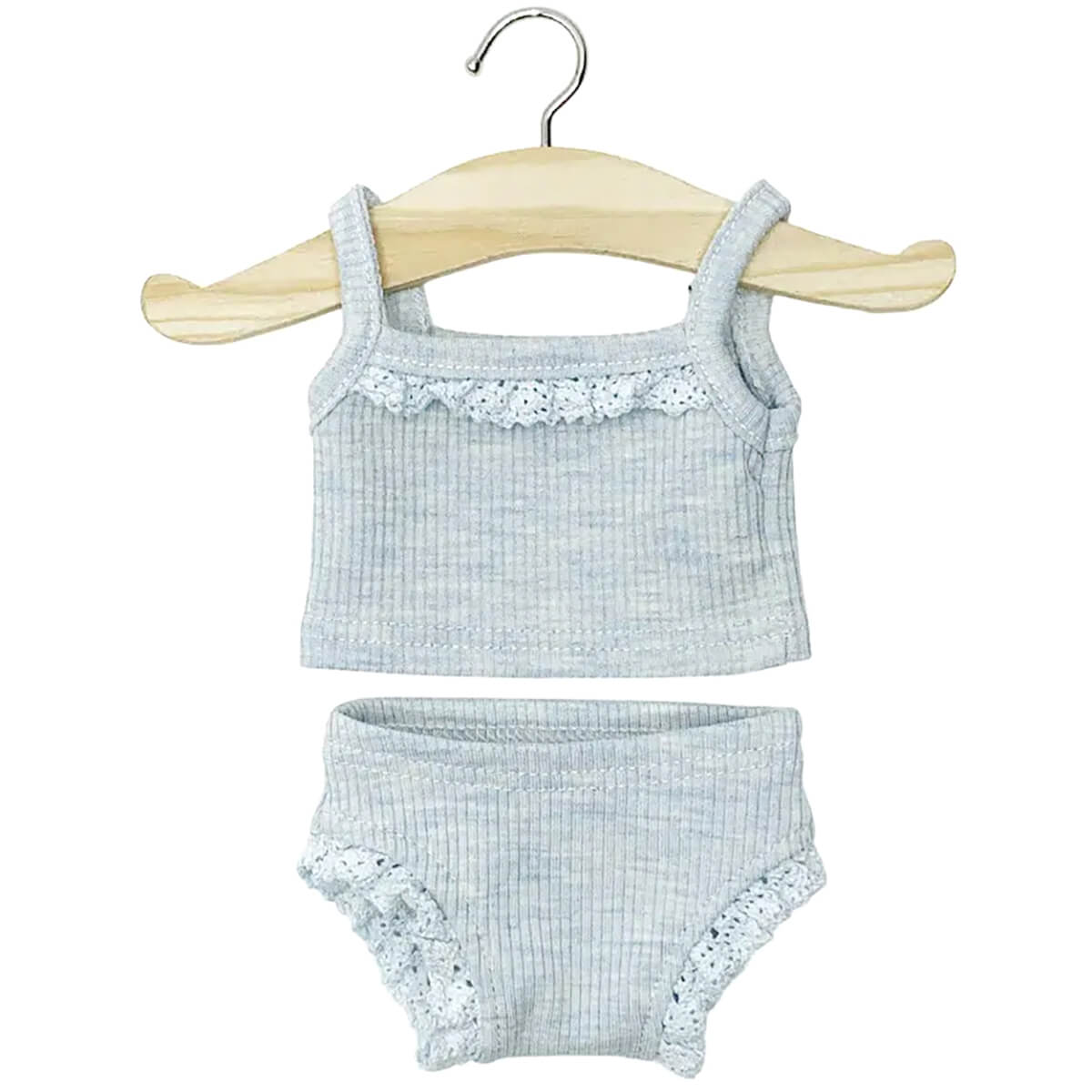 Lace Trim Ribbed Girl's Underwear Set (34cm Doll) in Bleu Chine by Minikane