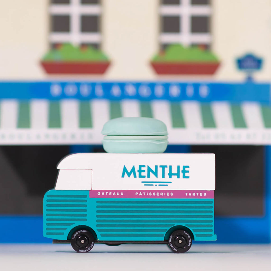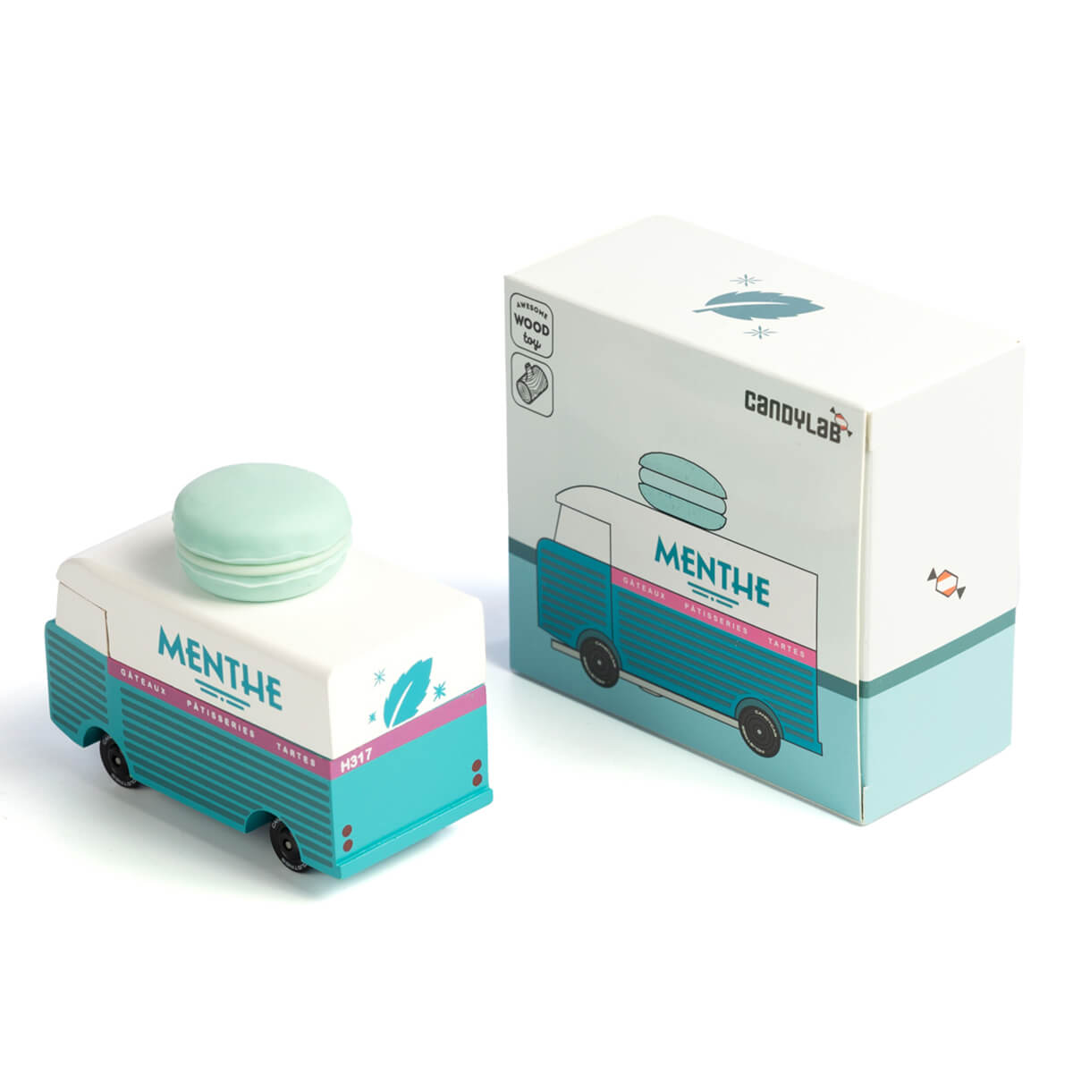 Menthe Macaron Van Mini Candyvan By Candylab Toys. Oh la la! Get ready for the cutest addition to the toy collection - the Macaron Van. This handcrafted beech wood toy is perfect for little pastry chefs in the making. Serve up your favorite imaginary macarons like a true Parisian. Available in three delicious flavors - Framboise, Citron, and Menthe. Oui oui!