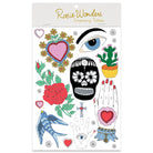 Mexico temporary tattoos (A5 Size) by Rosie Wonders. Features Day Of The Dead inspired illustrations by Rosie Marshall. One sheet will provide several tattoos. Easy and quick to apply and will last 2-5 days.
