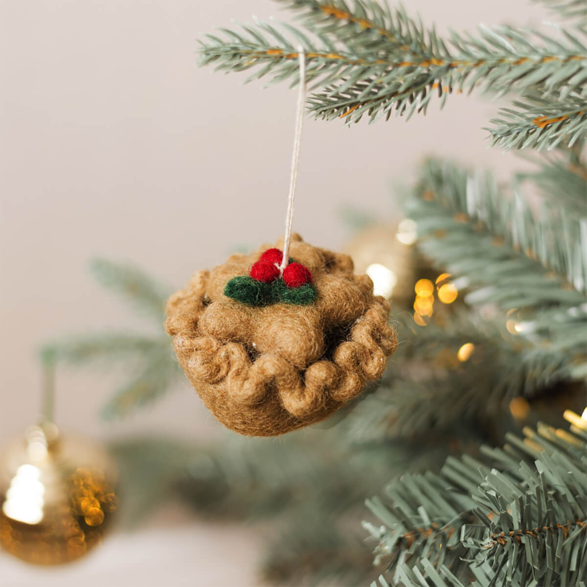 Mince pie hanging Christmas decoration. A beautiful, handmade and fair trade felt decoration.