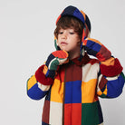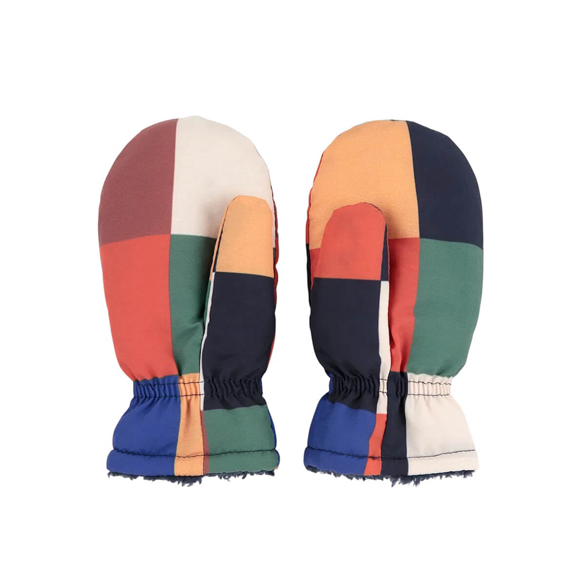 Multicolour Tile Mittens in Red by Bobo Choses. Bold and bright these practical mittens are ready for adventures in the cold.