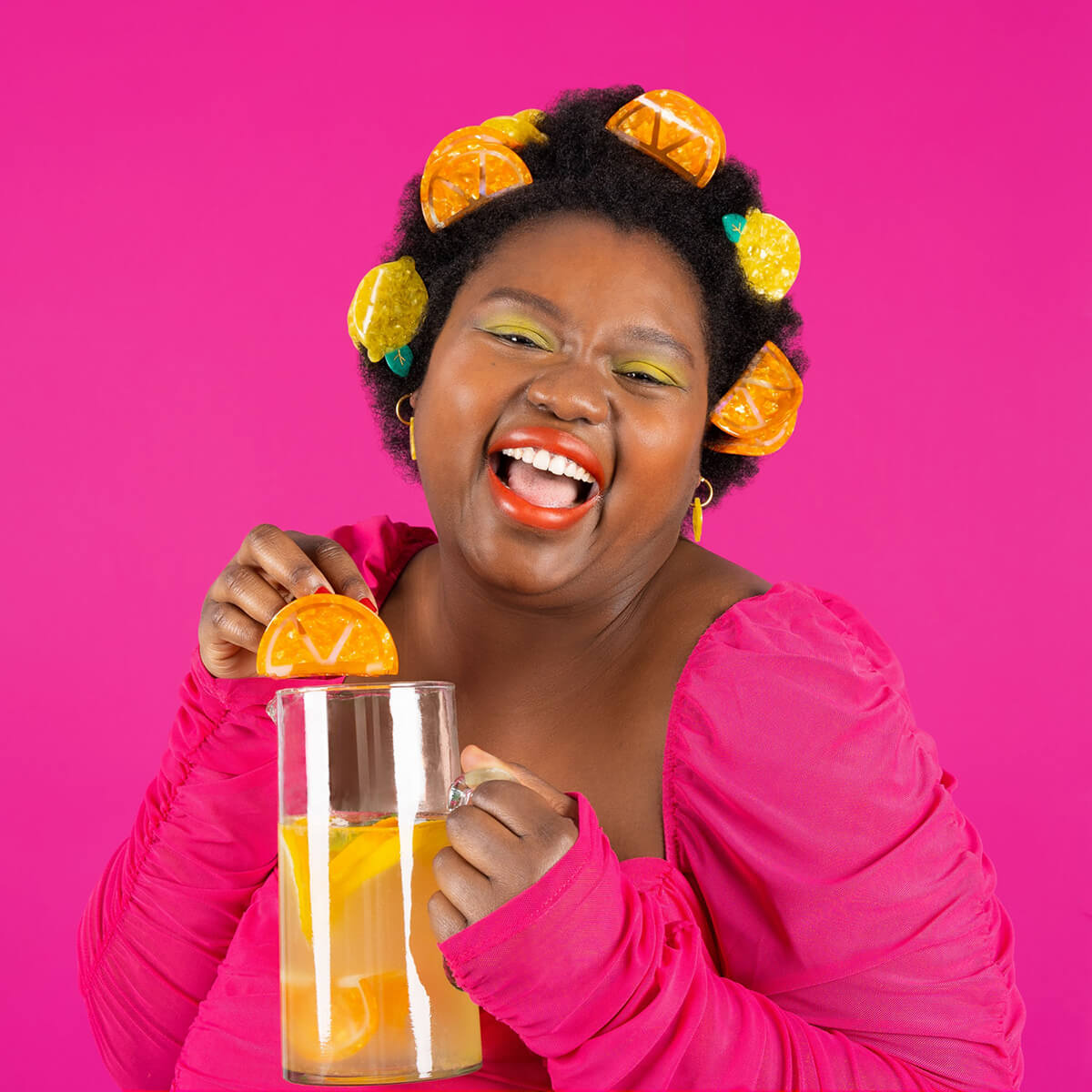 Orange hair claw by Coucou Suzette. Full acetate hair claw shaped as an orange wedge. A beautiful pearly orange clip to tame the hair into the most original bun. Made from plant-based eco-friendly cellulose acetate.