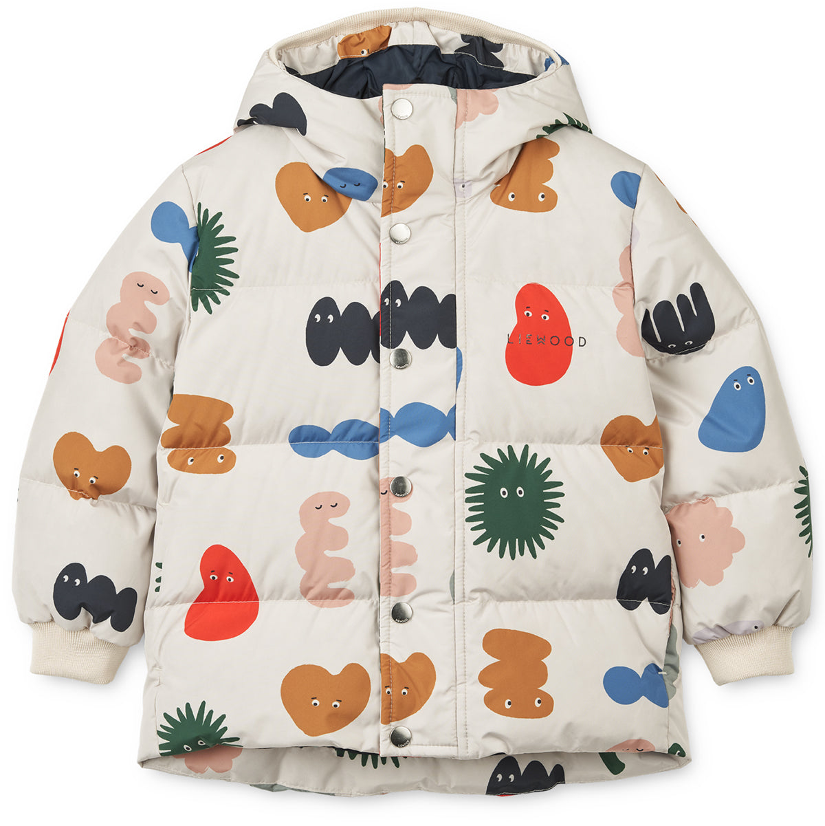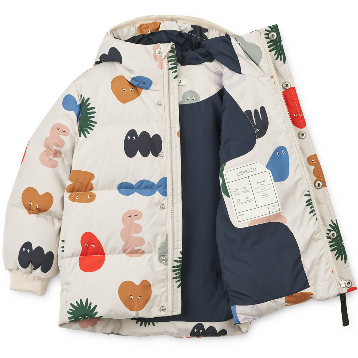 Palle Puffer Down Jacket by Liewood.  A warm, windproof and waterproof coat with a cool graphic print. Ecological water-repellent impregnation BIONIC FINISH® ECO. Zipper and snap button closure. This lightweight and cosy insulated jacket will keep children snug and dry all winter long.
