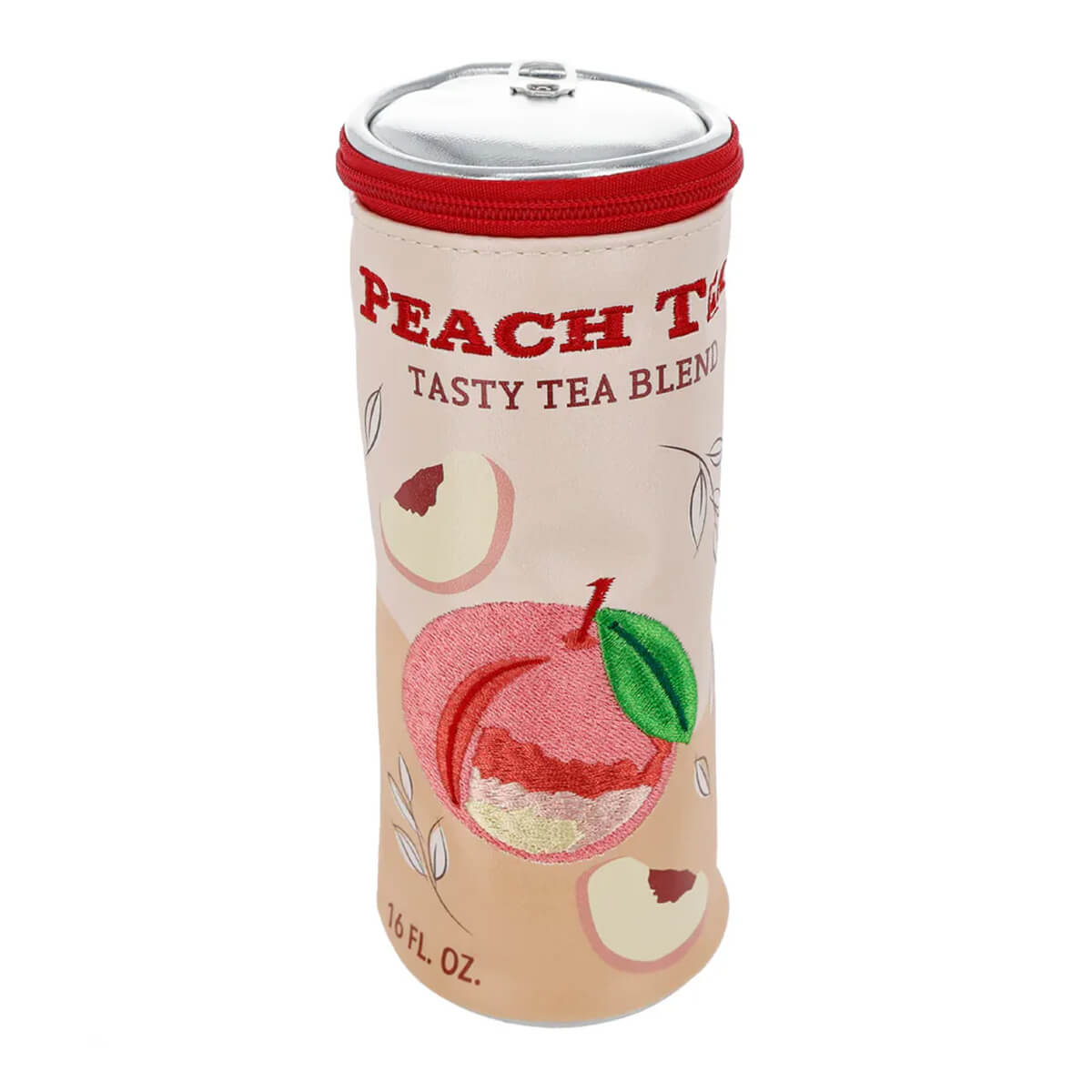 Peach Tea Pouch by Yup! Introducing a unique series of pouches inspired by food packaging, designed to tantalize your appetite and spark your imagination for their use! These multi-purpose storage pouches are finished with attention to detail and lined inside. Storage pouch with a humorous design inspired by a can of peach iced tea.