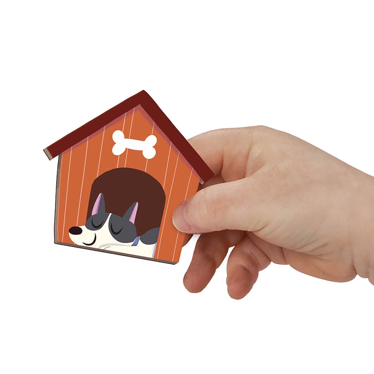 Pets magneti stories by Janod. Made up of 30 coloured magnets and an illustrated magnetic board, this magnetic game allows children to create their own stories and scenarios. Perfect for at home or in the car.