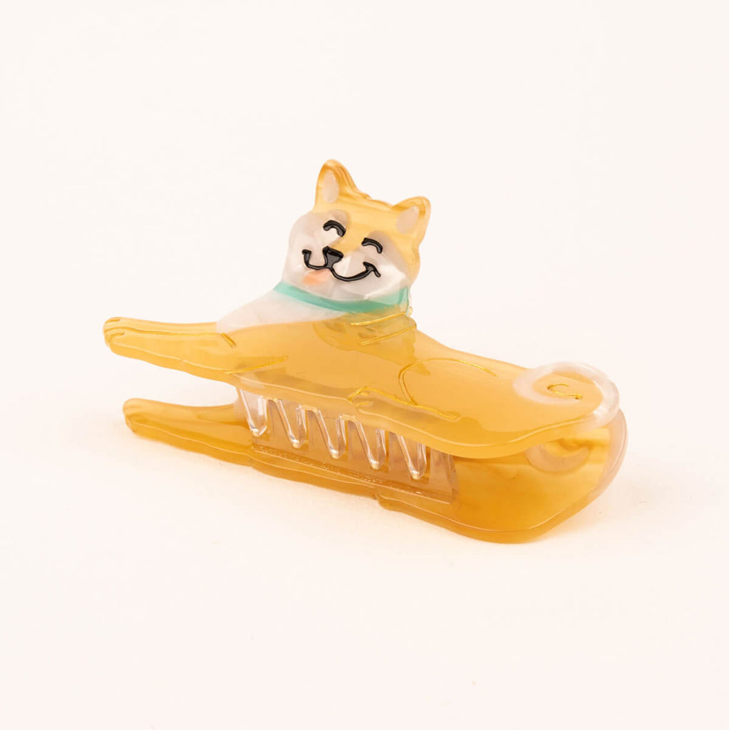 Shiba hair claw by Coucou Suzette. Full acetate hair claw shaped as a Shiba Inu dog. Made from plant-based eco-friendly cellulose acetate.
