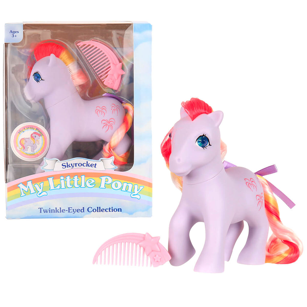 Sky Rocket My Little Pony by Hasbro. Authentic reproduction of the original 1980s My Little Ponies. Collectable item and includes pony, comb and ribbon.