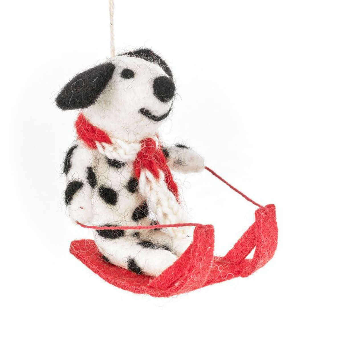 Sledging Dalmatian Hanging Christmas Decoration by Felt So Good