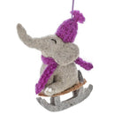 Sledging Elephant Hanging Christmas Decoration by Felt So Good