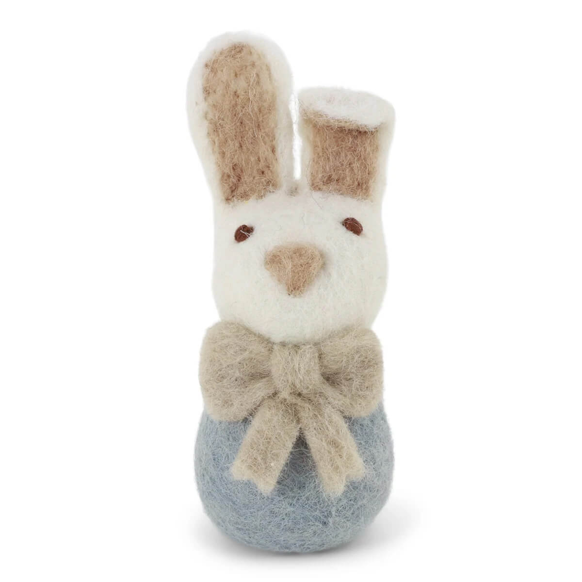 Small Bunny Hanging Decoration by Gry & Sif. Sweet bunny hanging decoration with string. A beautiful soft felted Easter decoration. Handmade and truly unique. Suitable for all your Easter festivities.