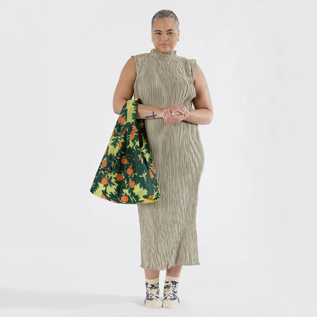 Standard bag by Baggu. Baggu's best selling reusable bag isn't just for the grocery store, it goes everywhere and hauls almost anything. Carries 2-3 plastic grocery bags worth of stuff comfortably in hand or over your shoulder.