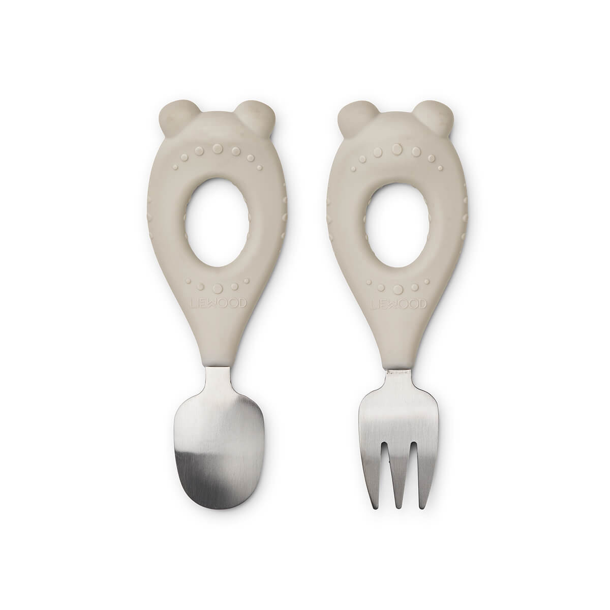 Stanley baby cutlery by Liewood. Cute and durable fork and spoon set for babies. The easy to grab handles encourage self feeding.