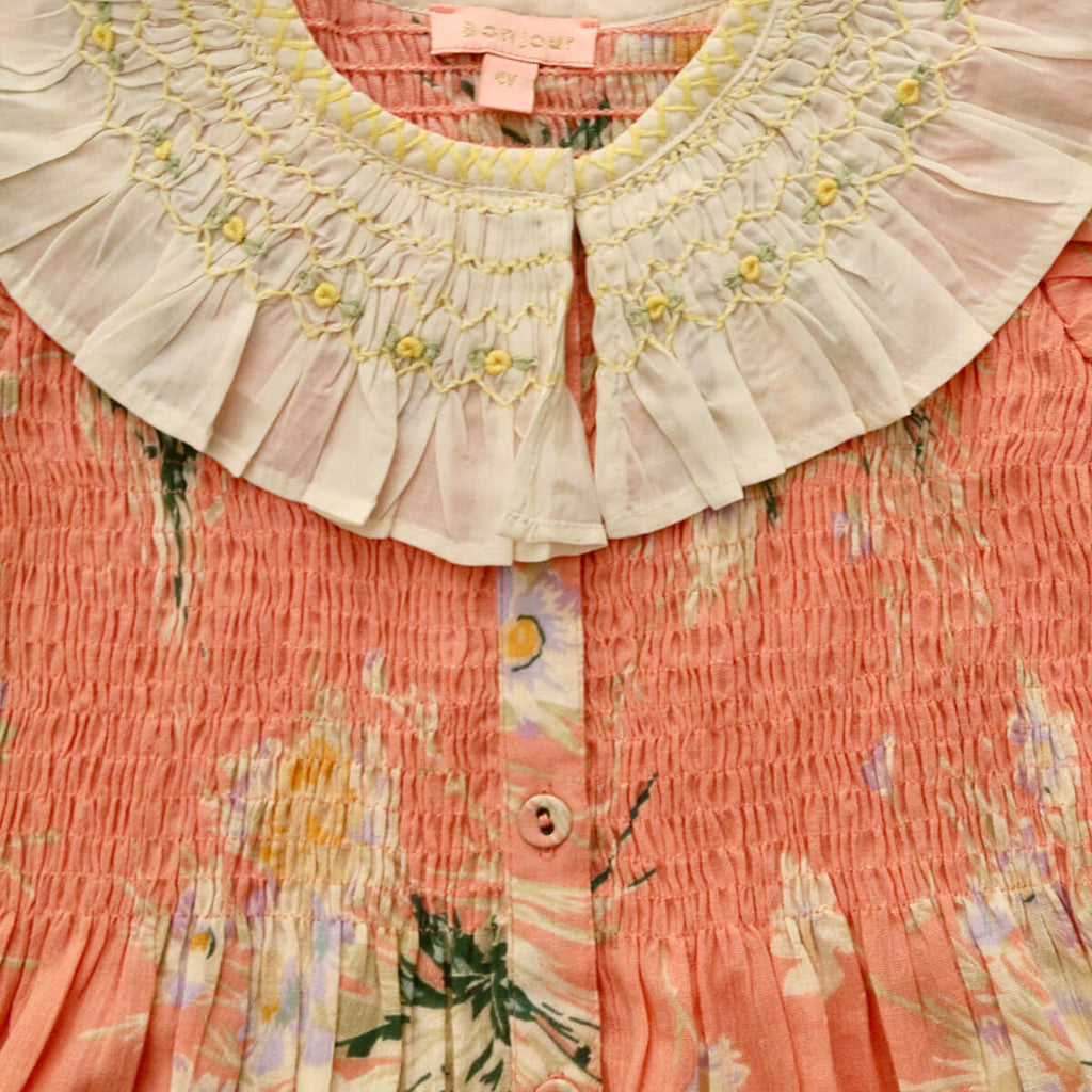 Tunique by Bonjour. One of Bonjour's most loved styles, this pretty short sleeve blouse has an updated statement collar and signature shirring.